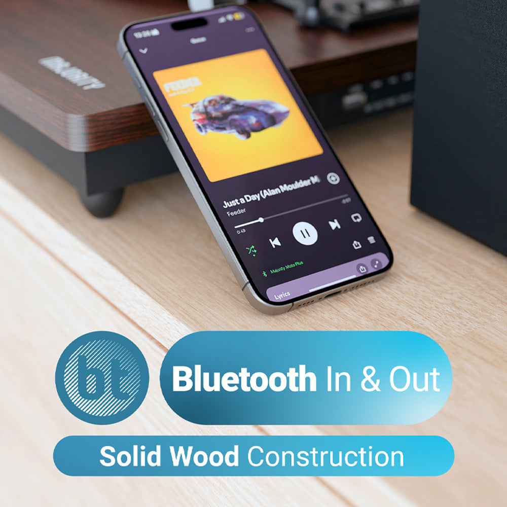 Majority Moto Plus Turntable – UK Turntable with Subwoofer and Modern Connectivity.Rediscover the warmth of vinyl with the Majority Moto Plus Turntable, a perfect blend of vintage style and modern sound performance. Whether you’re playing your favorite records or streaming music wirelessly, the Moto Plus delivers rich, room-filling audio through its built-in 2.0 stereo speakers and powerful 60W output. The premium Audio-Technica cartridge captures every detail, offering crisp and vibrant playback that brings your music to life. With multi-speed support and Bluetooth connectivity, it’s the ideal choice for both classic vinyl lovers and contemporary music enthusiasts.