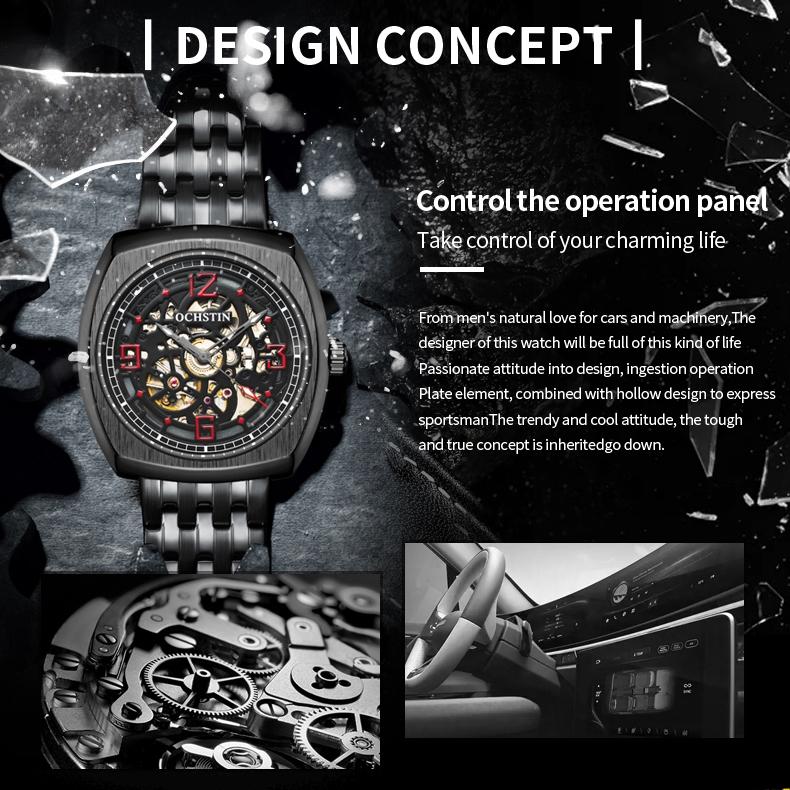 Masterpiece Mechanical Men Watch with Steel Band – Black Red
