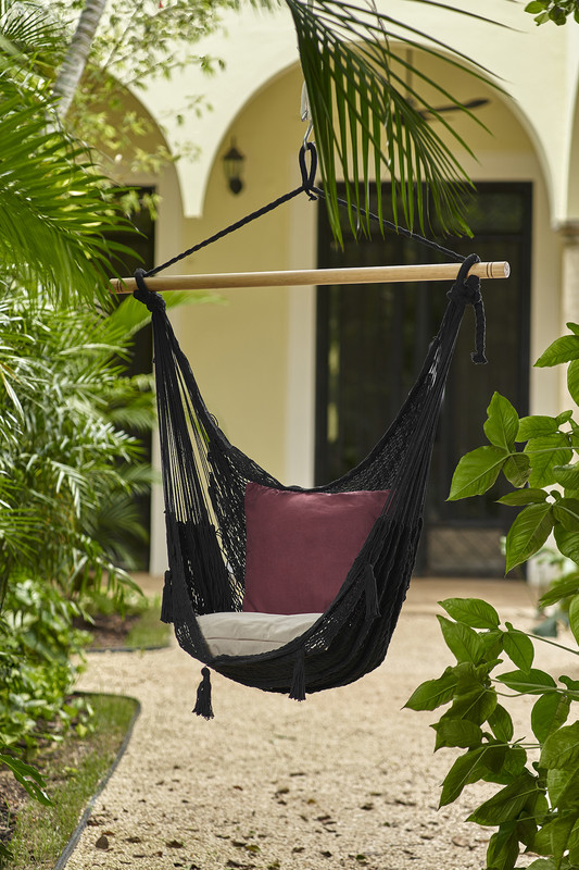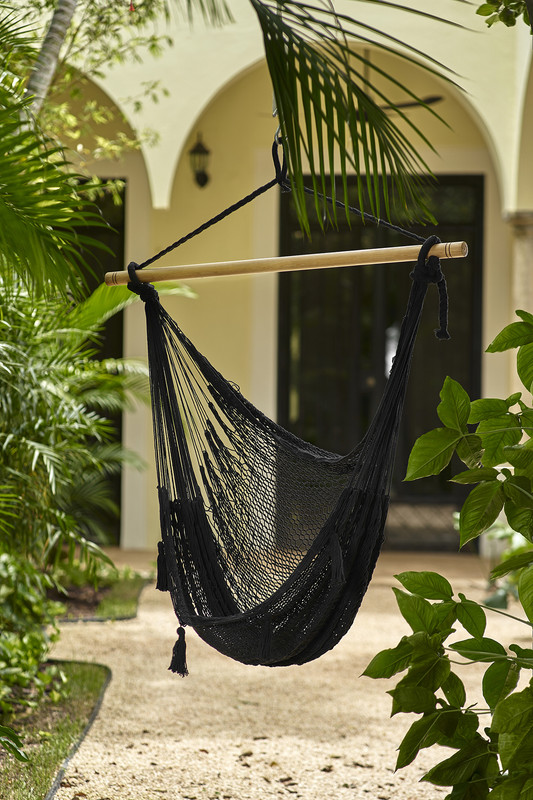 Mayan Legacy Extra Large Outdoor Cotton Mexican Hammock Chair in Black Colour