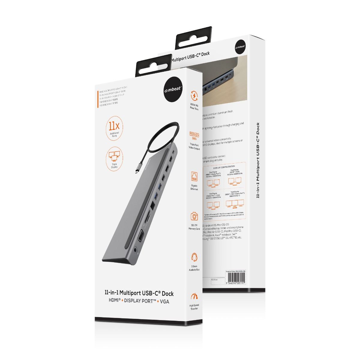 mbeat 11-in-1 Multiport USB-C Dock with HDMI, DisplayPort & VGA
