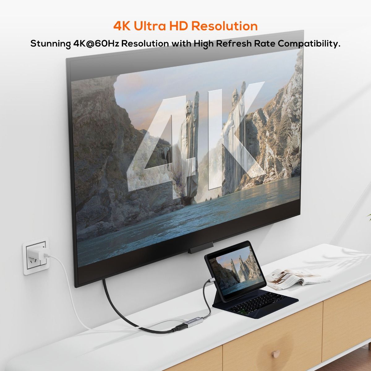 Supports up to 4K@60Hz resolution, providing immersive, high-definition visuals with backward compatibility for 2K@144Hz and 1080p@240Hz, ensuring smooth, detailed images for all your applications, from gaming to video editing.