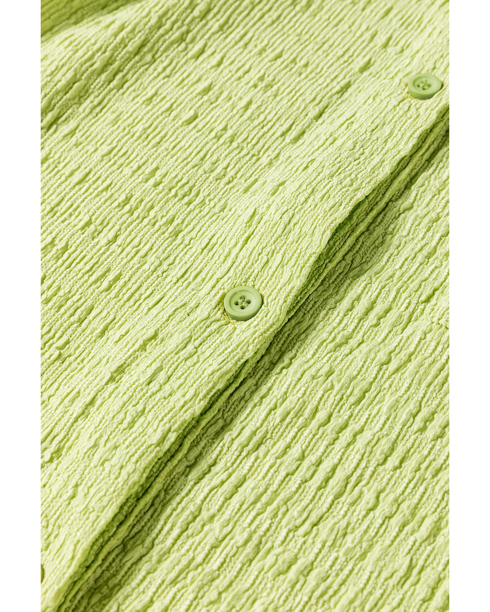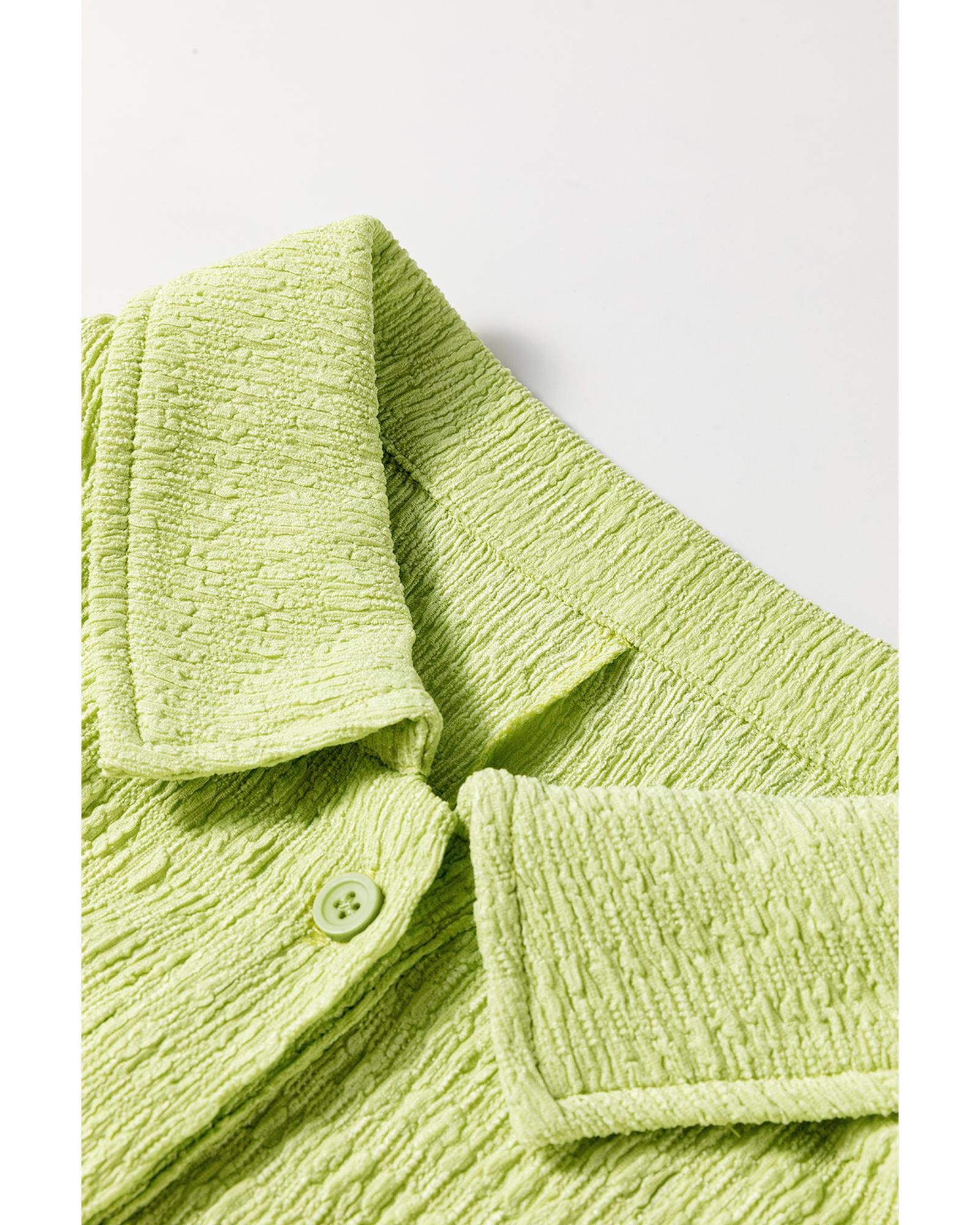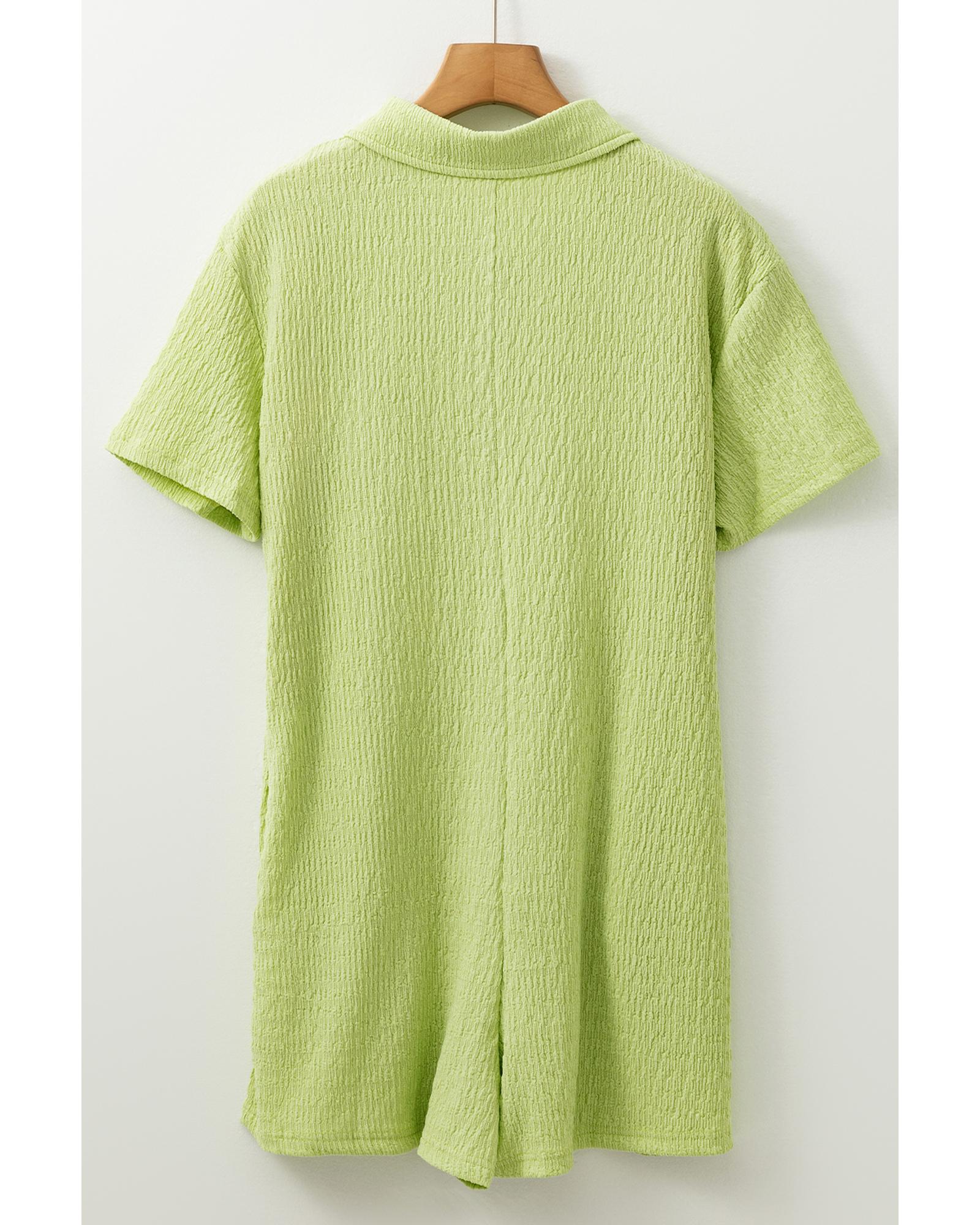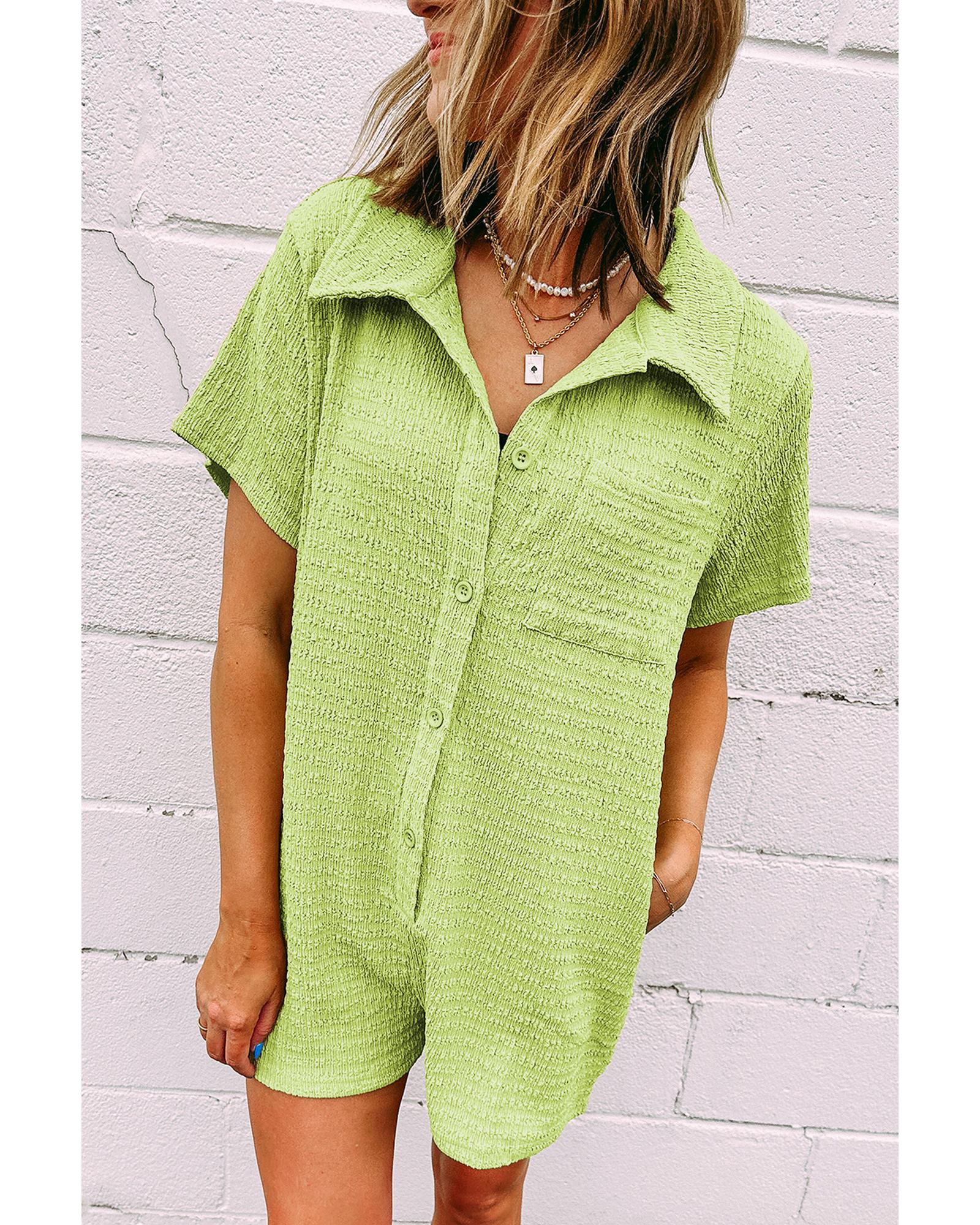 Meadow Mist Green Textured Short Sleeve Patched Pocket Buttoned Shirt Romper – XL