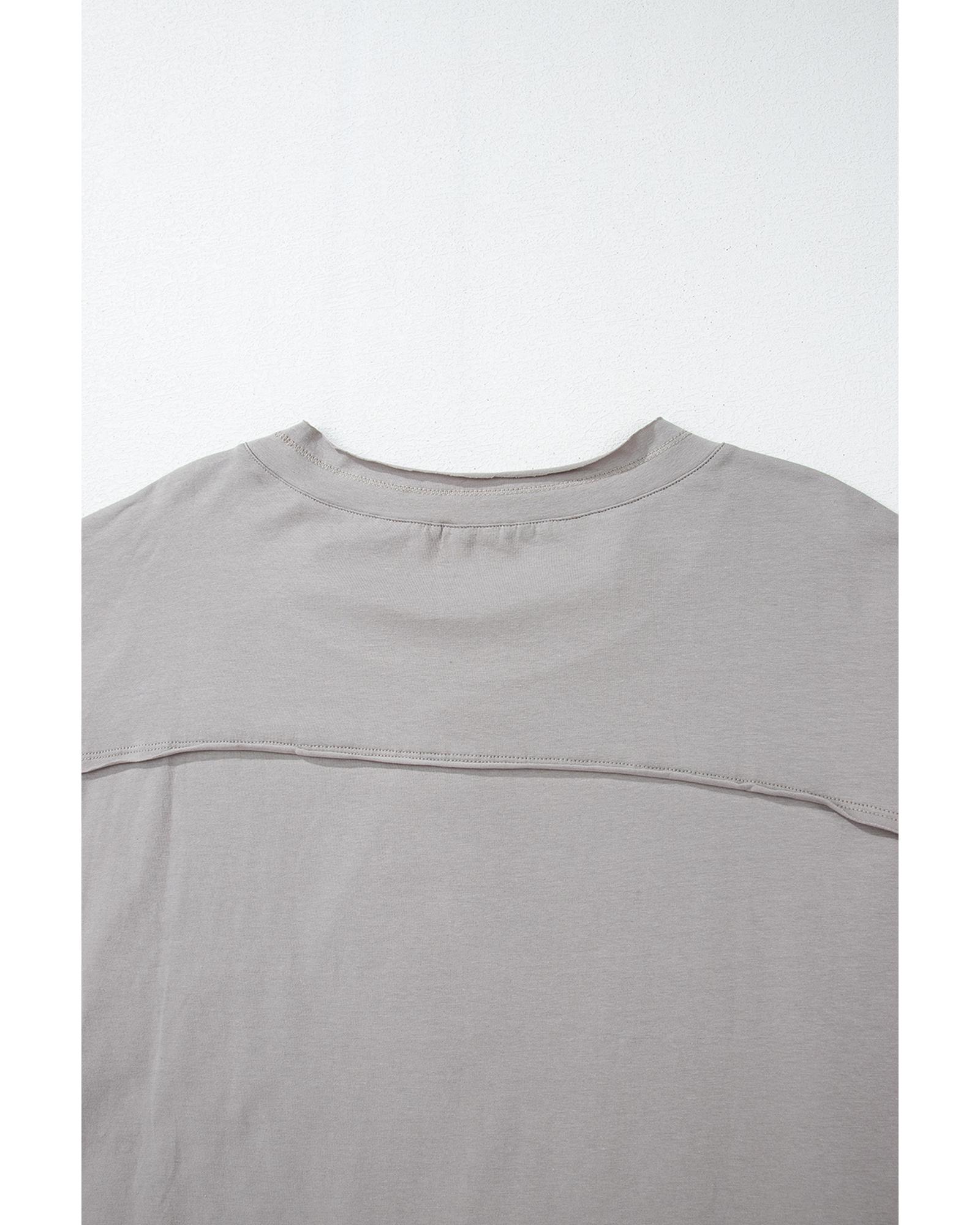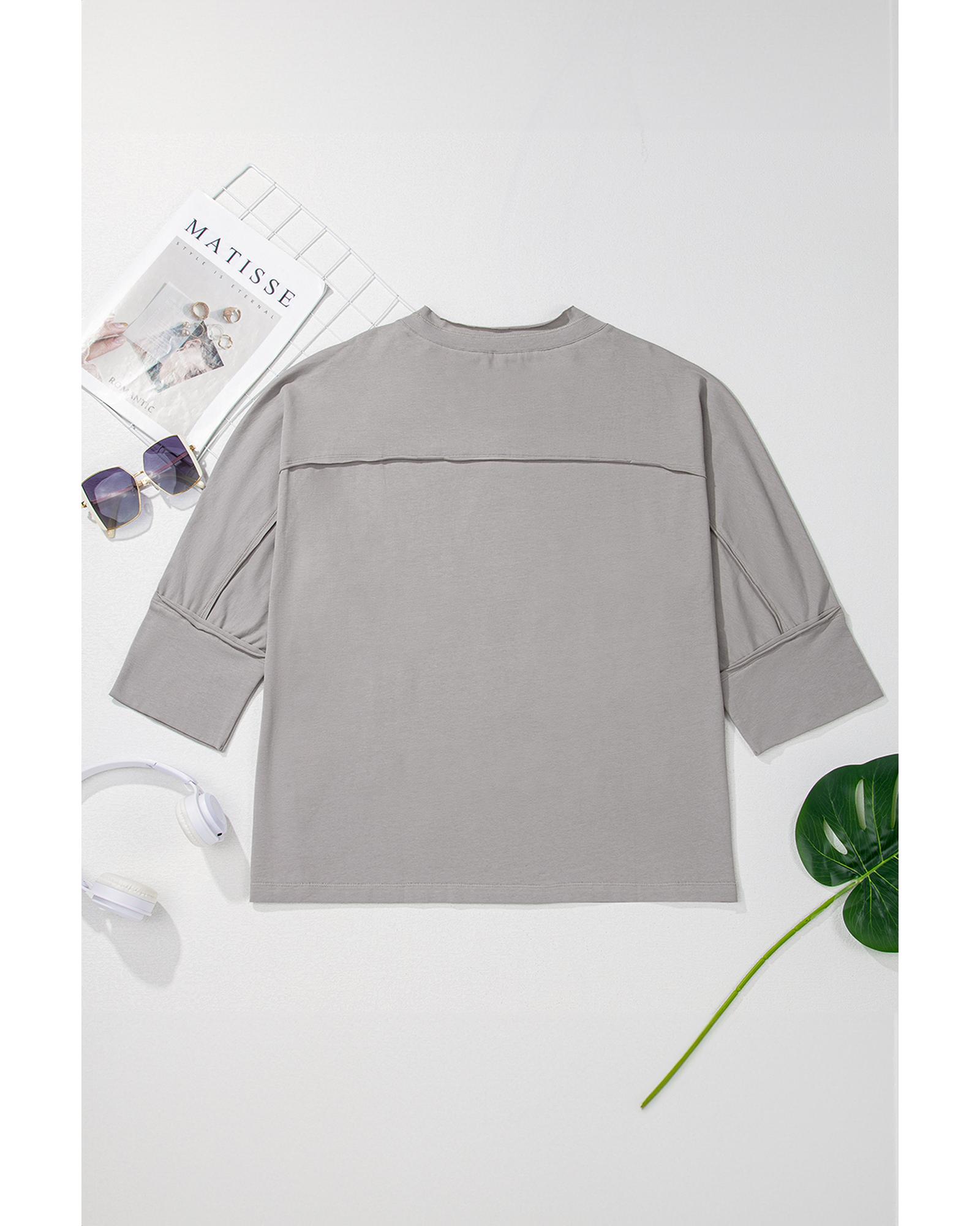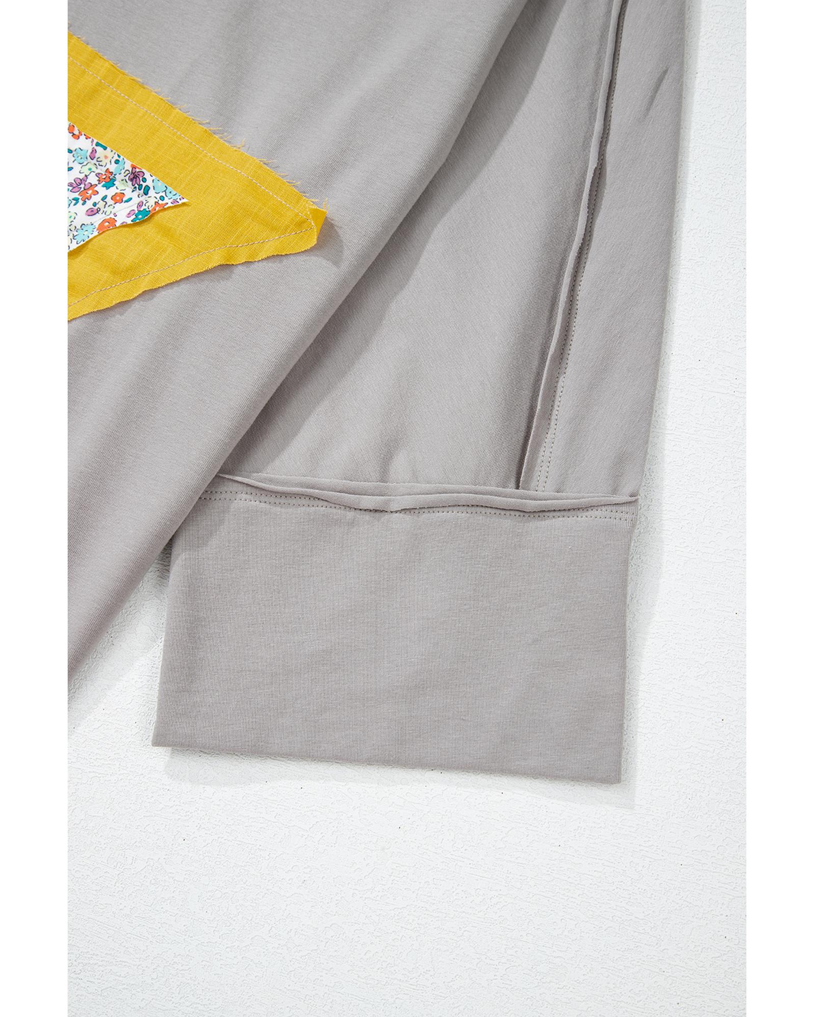 Medium Grey Floral Star Patched Pattern 3/4 Sleeve Plus Size Top – 3X