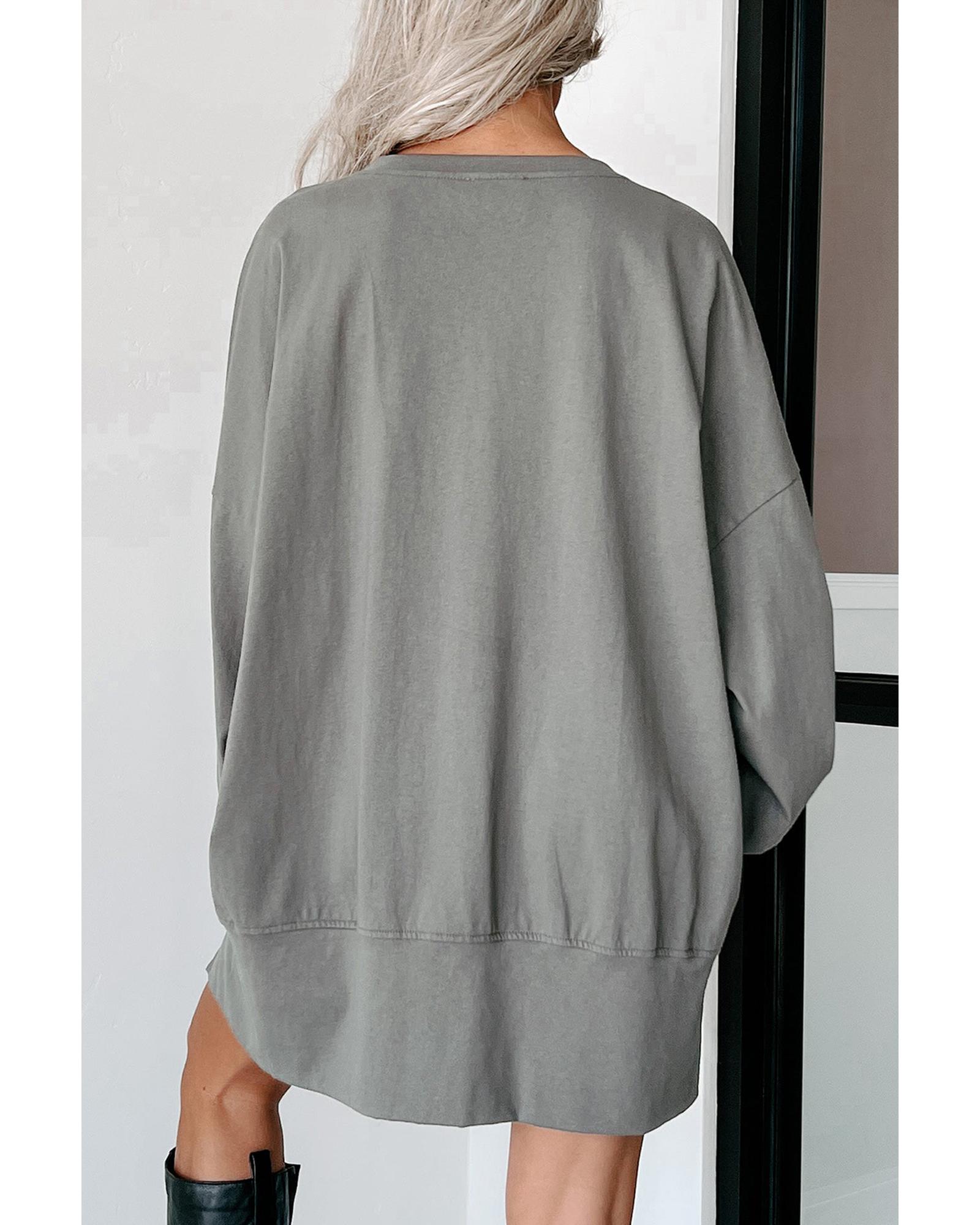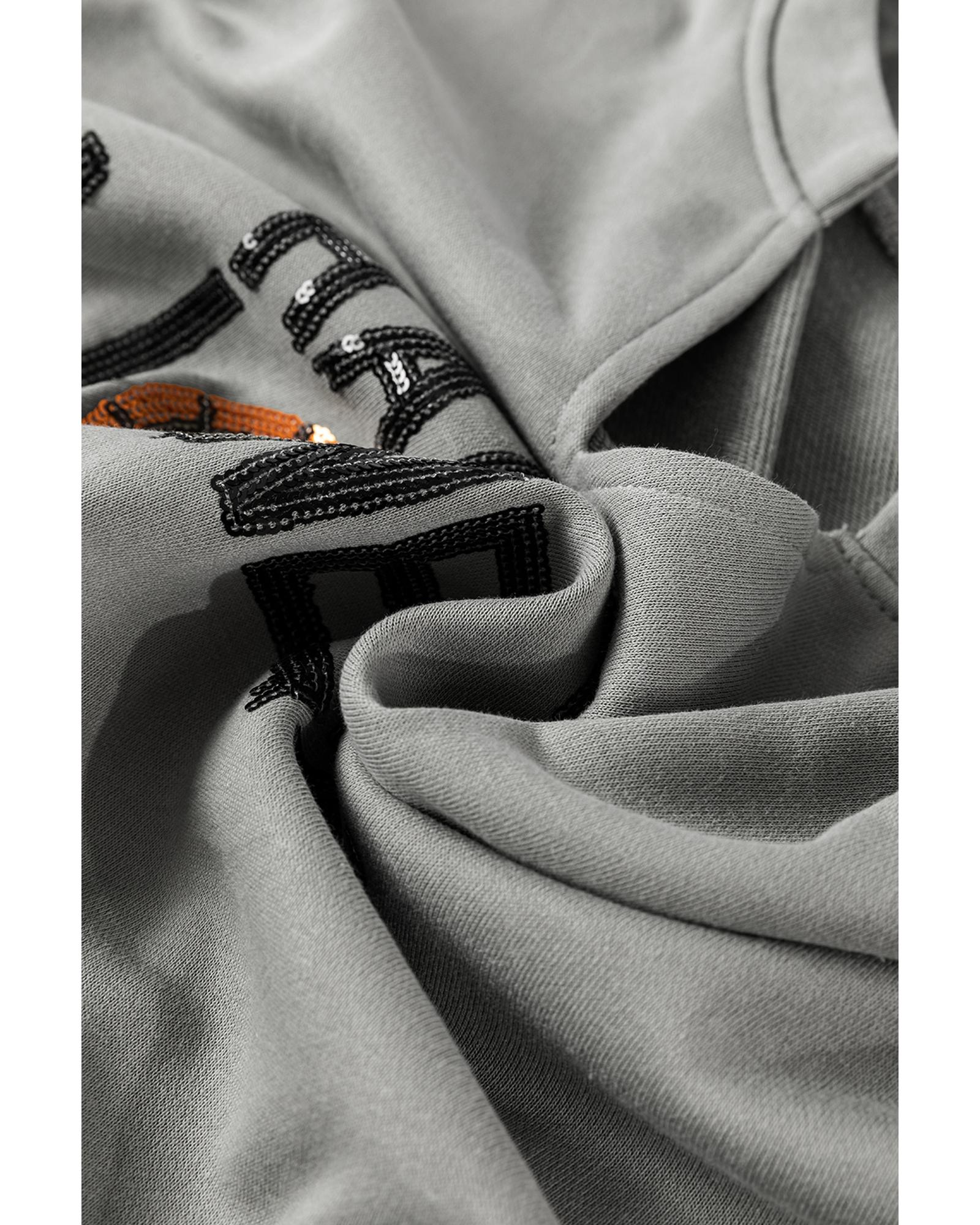 Medium Grey Sequin Happy Halloween Graphic Notched Neck Long Sleeve Loose Top – L