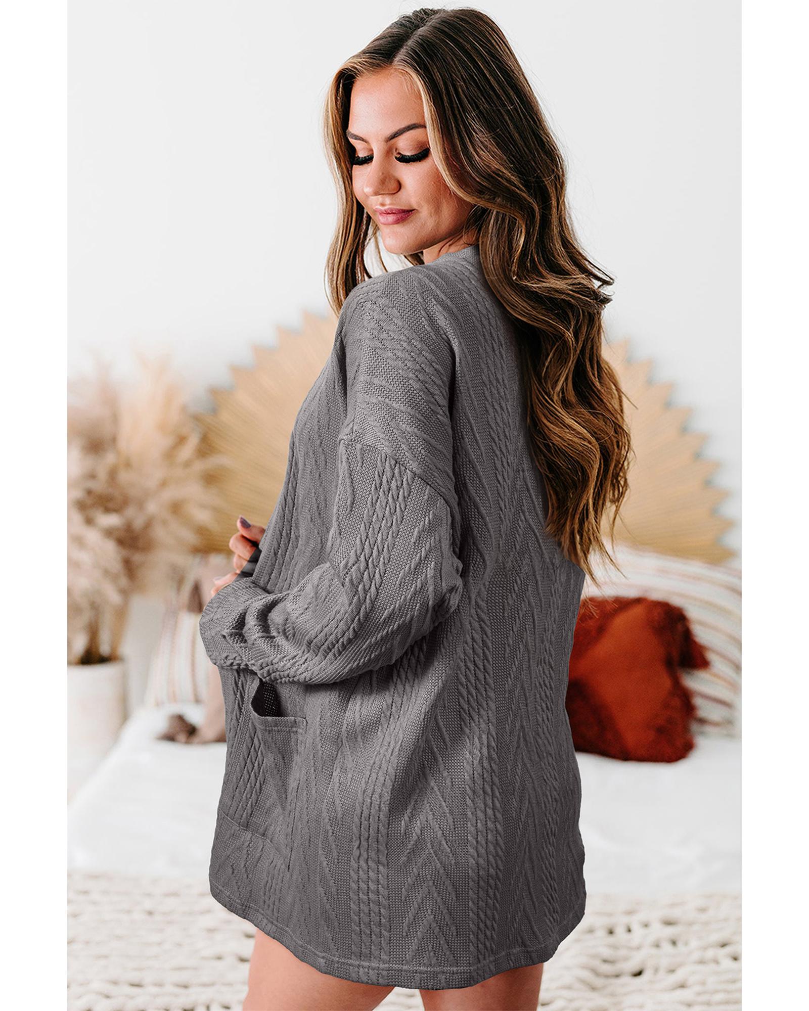 Medium Grey Solid Textured Open Front Cardigan with Pocket – L