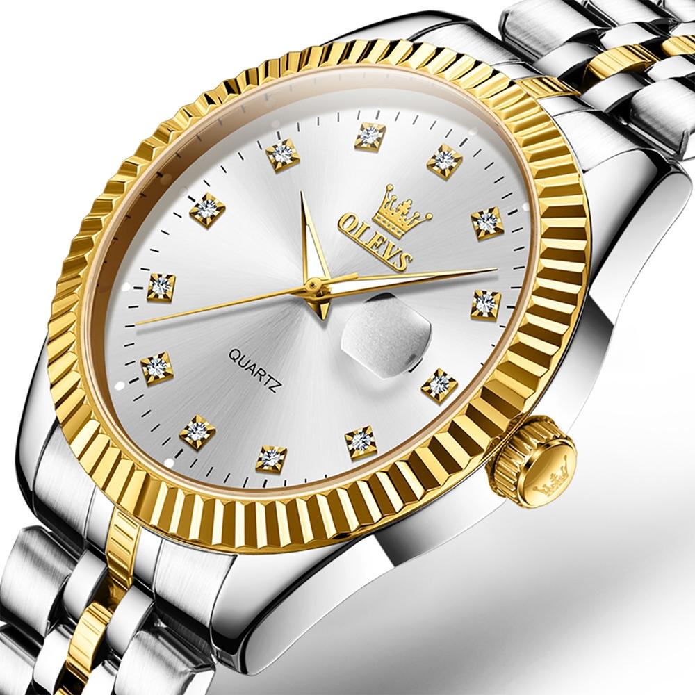 Men Luminous Waterproof Quartz Watch with Diamond Accents – White