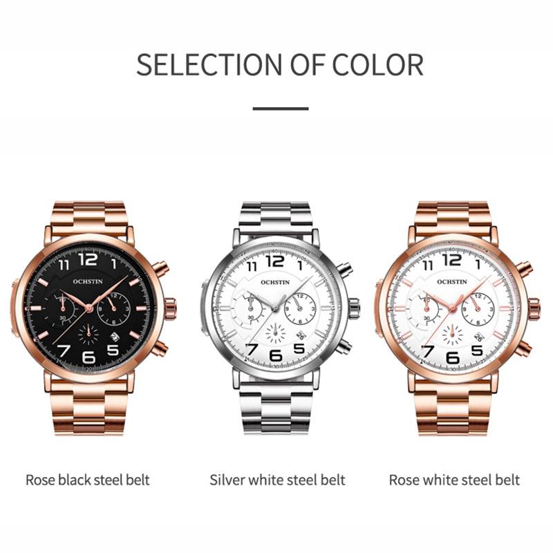Men Multifunction Steel Quartz Watch with Steel Strap – Rose Gold Black
