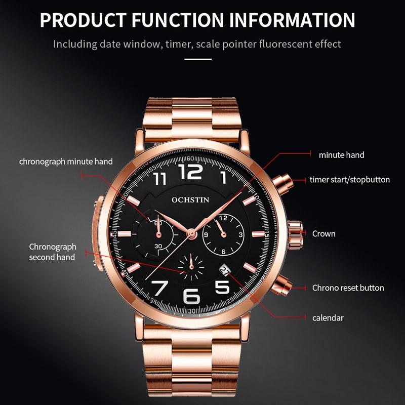 Men Multifunction Steel Quartz Watch with Steel Strap – Rose Gold White
