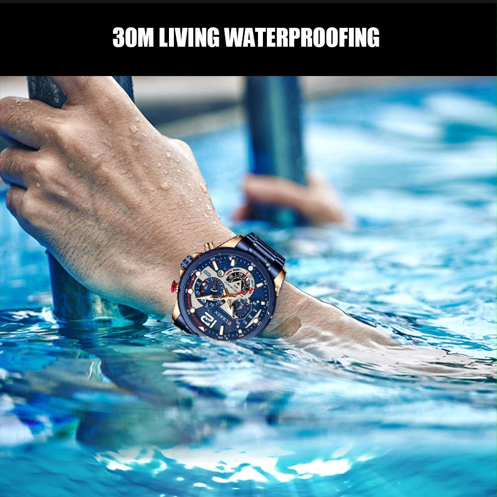Men Quartz Watch with Six-hand Steel Strap and Calendar – Black Shell Green