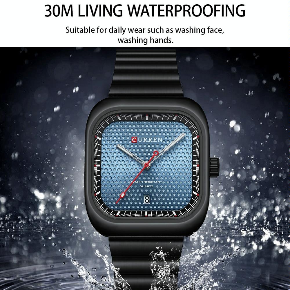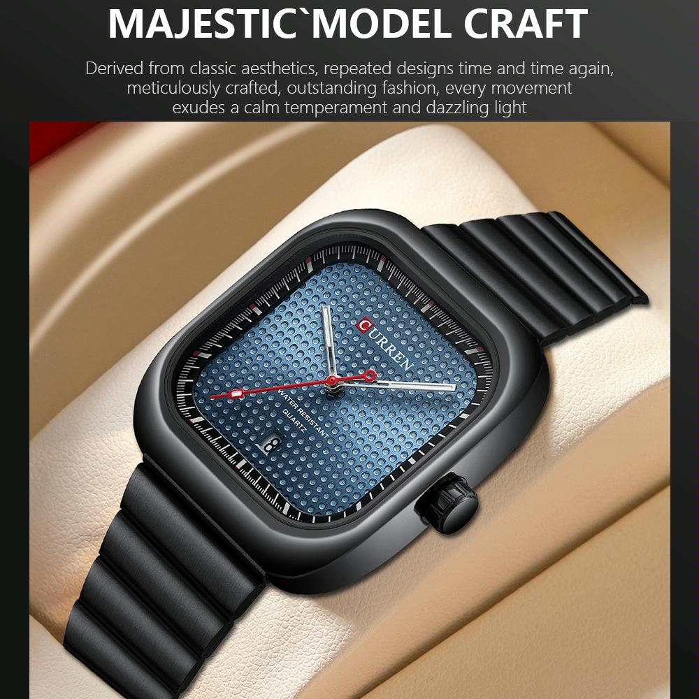 Men Square Steel Strap Quartz Watch – Casual Style – Black Shell Blue