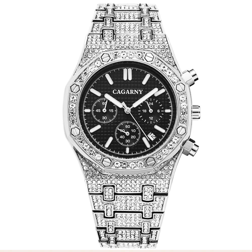 • 1 x 6881 Diamond-Studded Six-Needles Guartz Dual Movement Watch For Men With Stainless Steel Strap