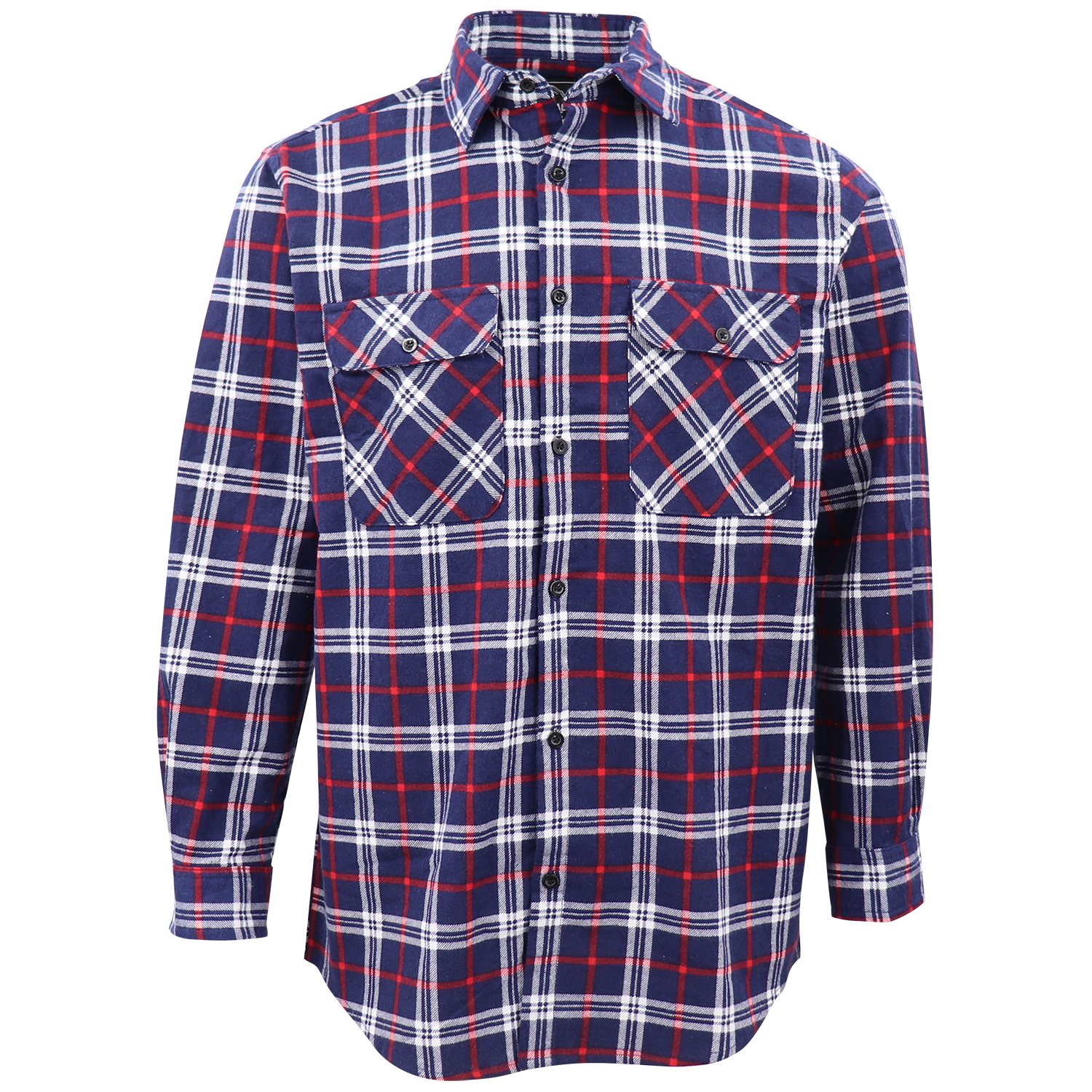 Men's 100% Cotton Flannelette Shirt Long Sleeve Plaid Check Flannel w Pockets, Patriot Navy Plaid, L