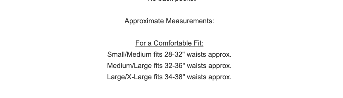 Small/Medium fits 28-32″ waists approx.