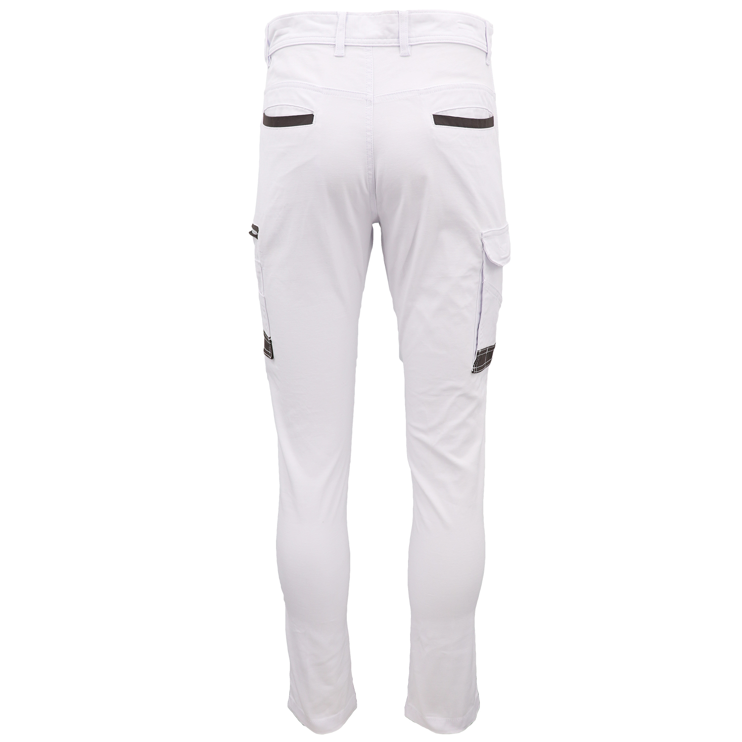 Men's Cotton Drill Cargo Work Pants UPF 50+ 13 Pockets Tradies Workwear Trousers, White, 28