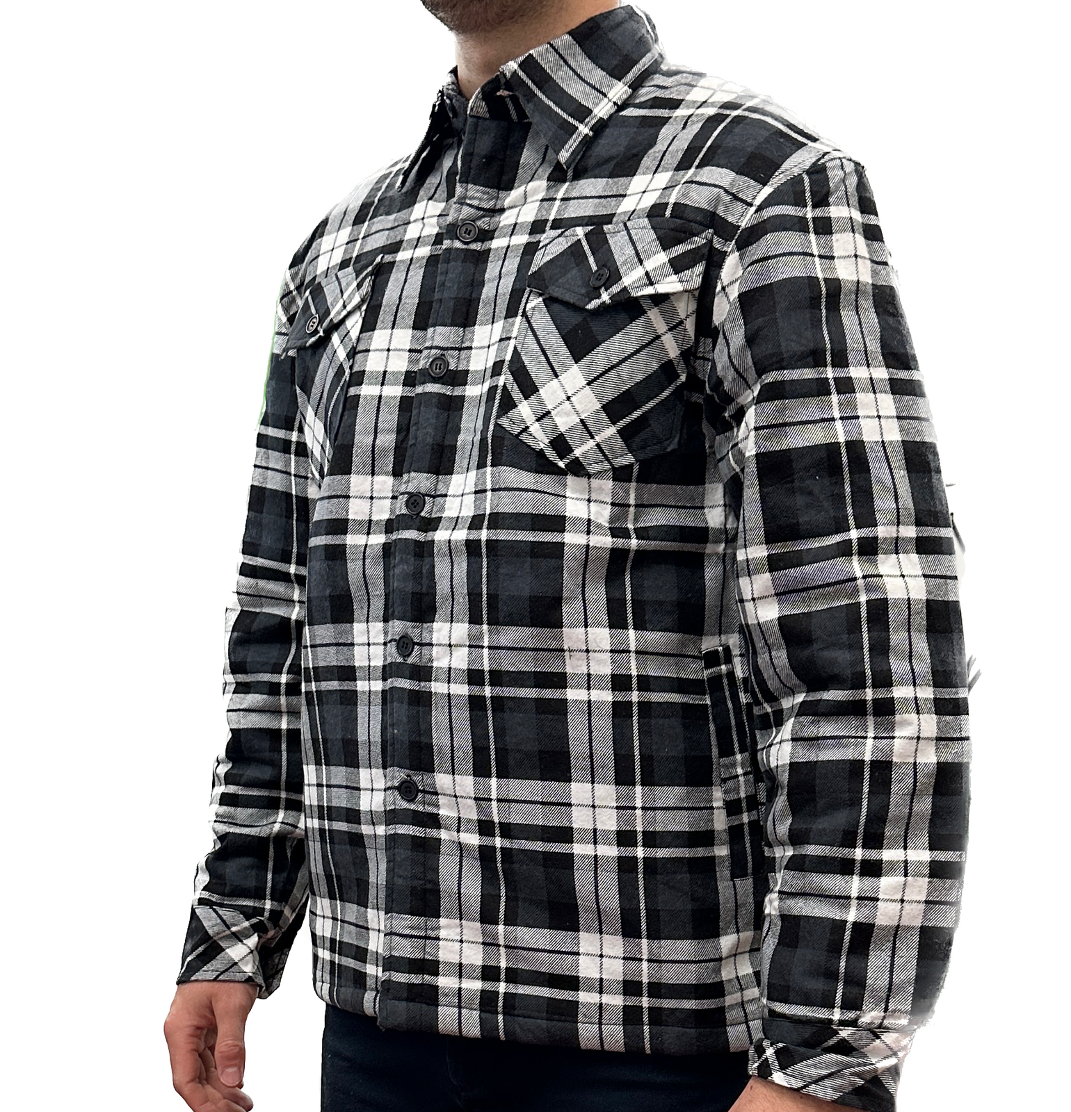 Mens QUILTED FLANNELETTE SHIRT 100% COTTON Flannel Jacket Padded Long Sleeve – Black/Charcoal/White (Quilted) – S
