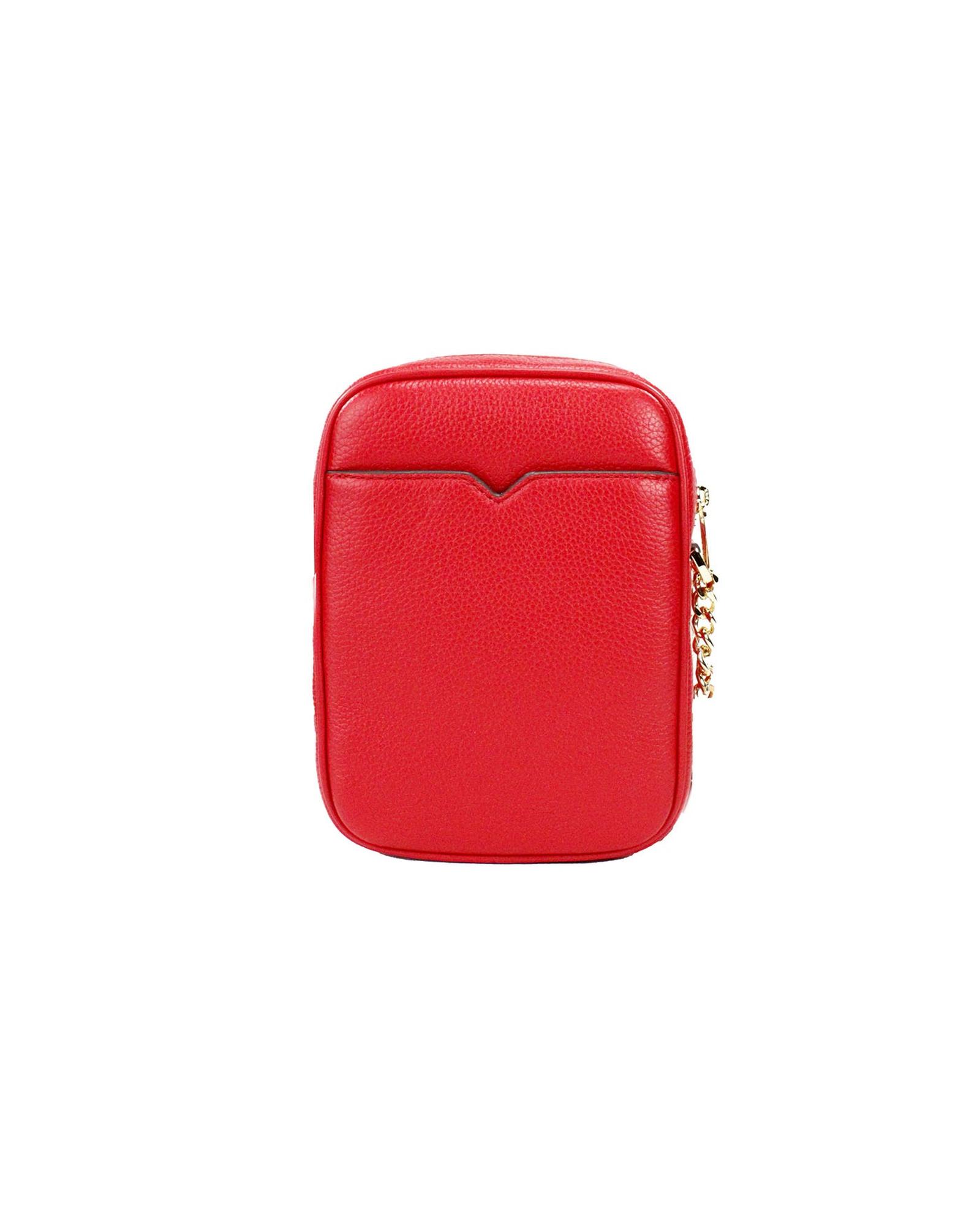 Michael Kors Women’s Jet Set Bright Red Pebbled Leather North South Chain Crossbody Bag – One Size