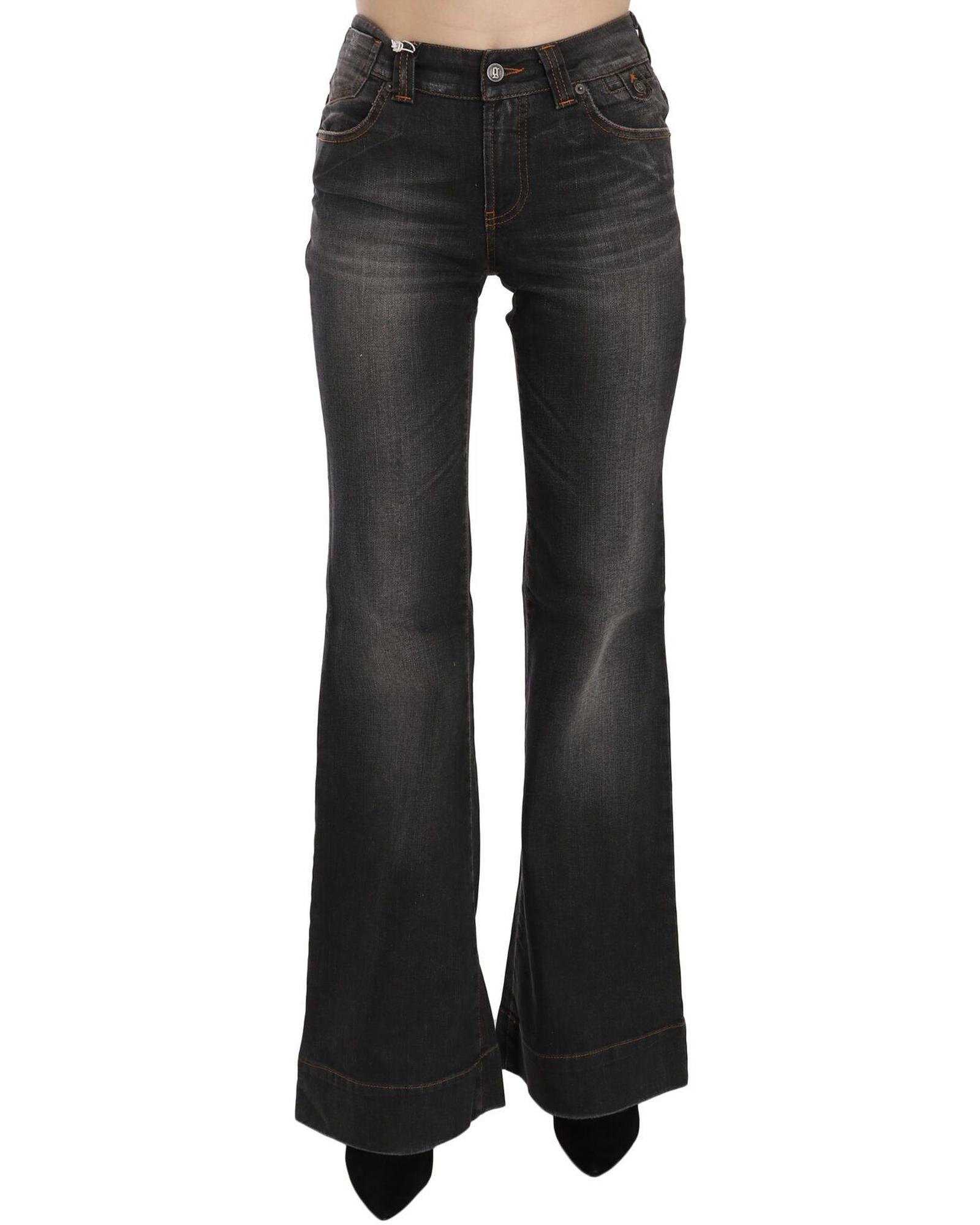 Mid Waist Flared Denim Casual Pants with Logo Details W26 US Women