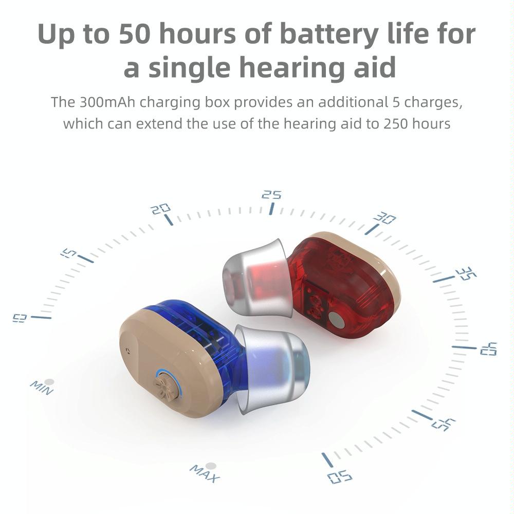 • Working Hours of Hearing Aid Extended Up to 250 Hours with Charging Box