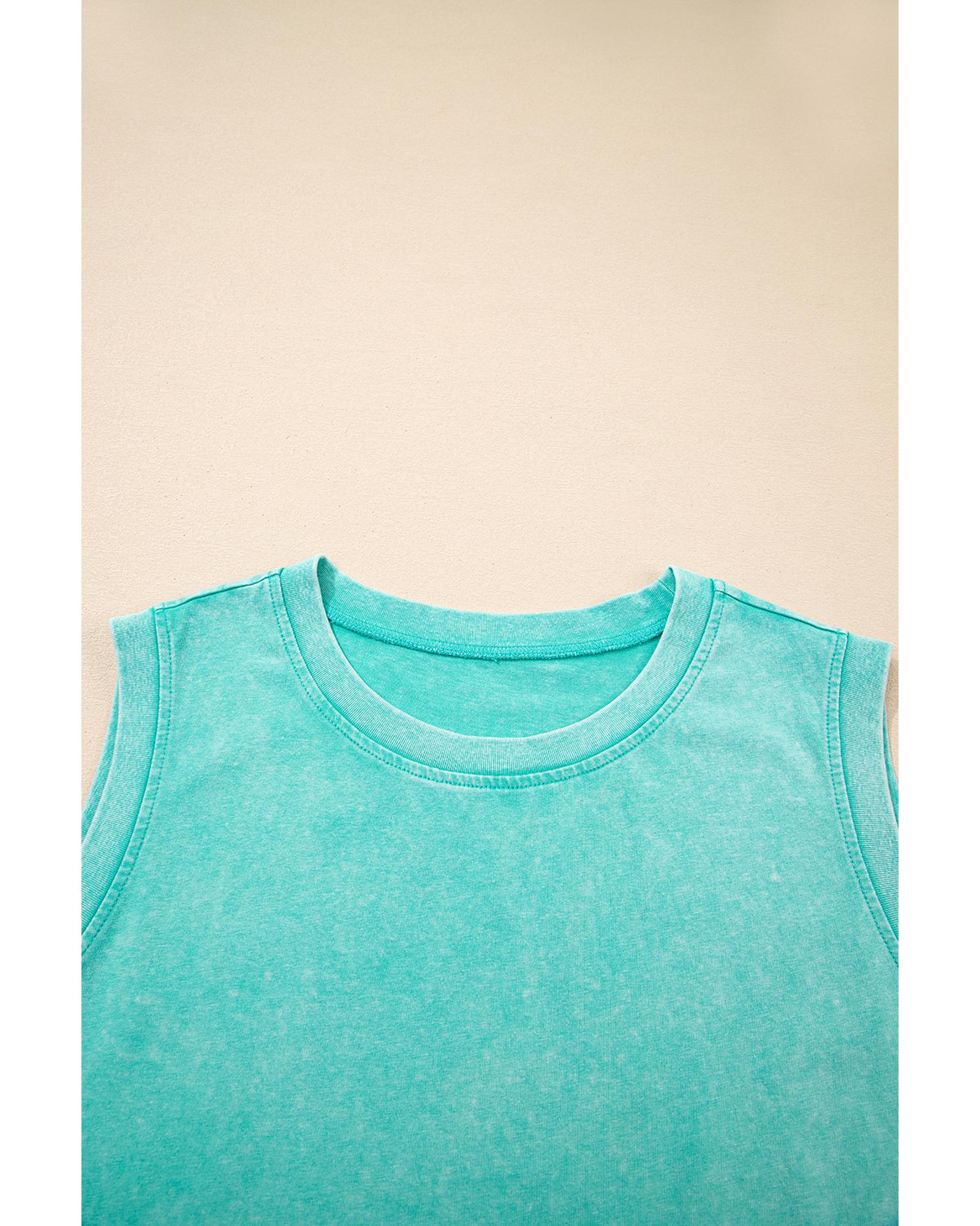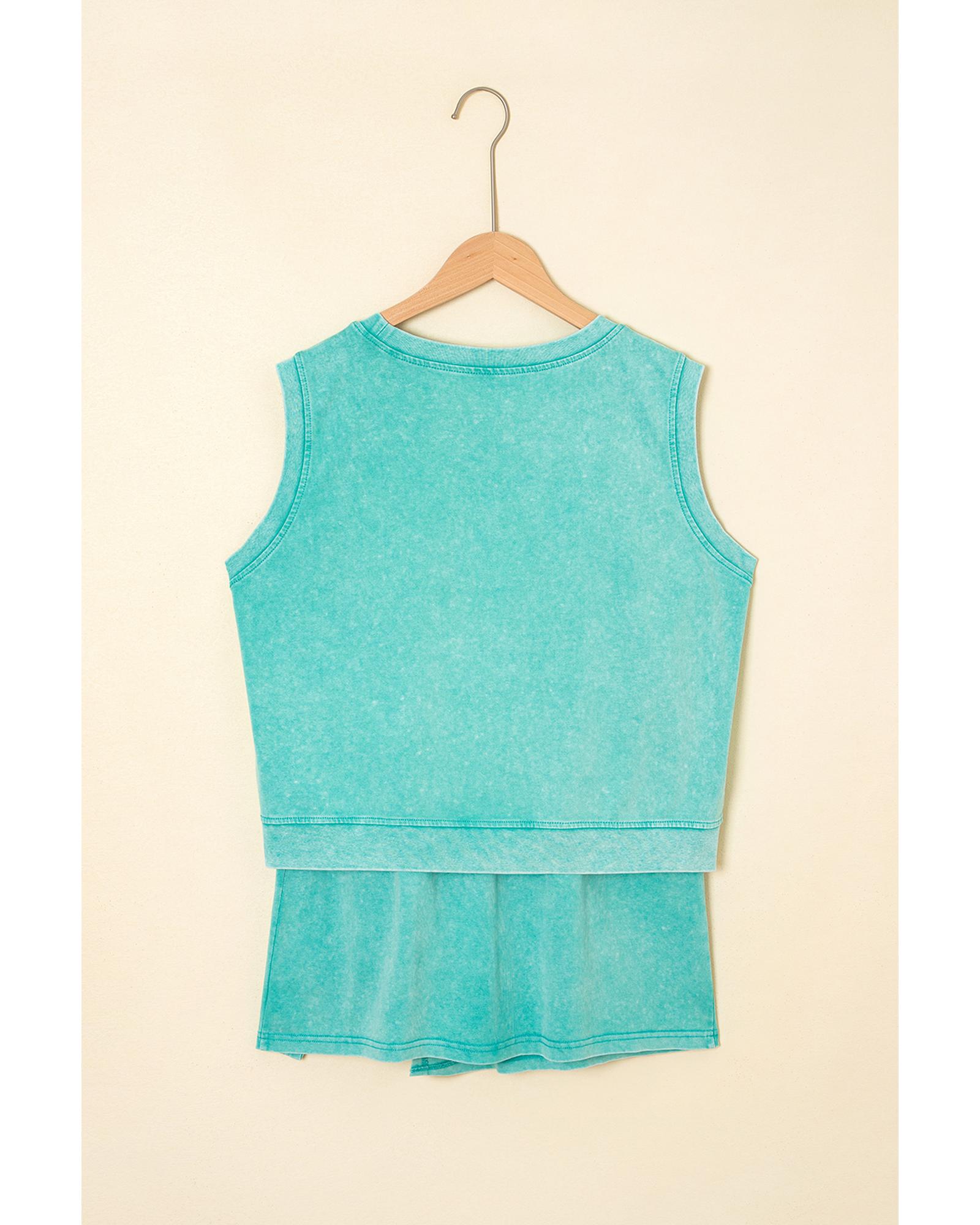 Mint Green 2 Pieces Mineral Wash Cotton Tank Top Lined Split Skirt Set – XL