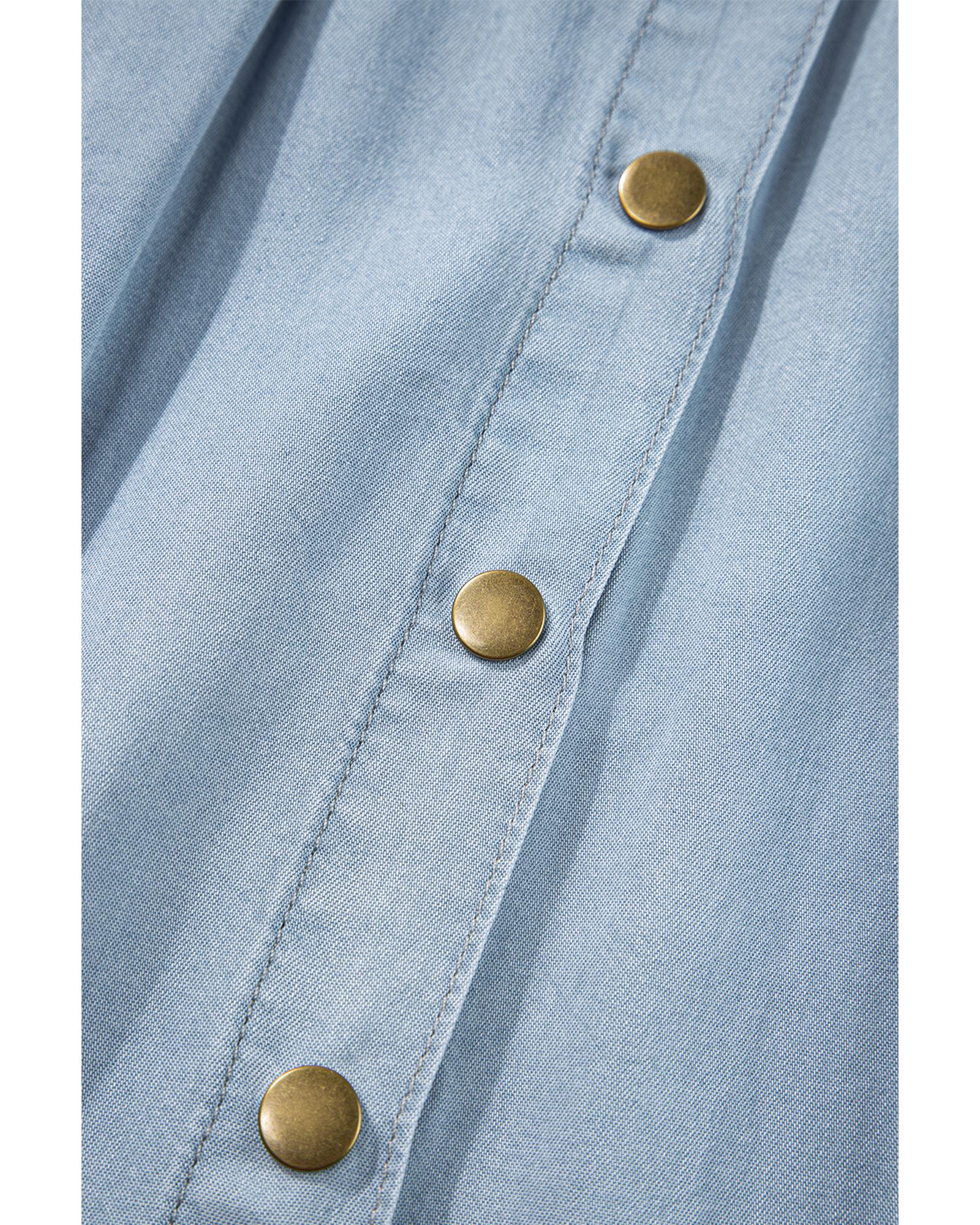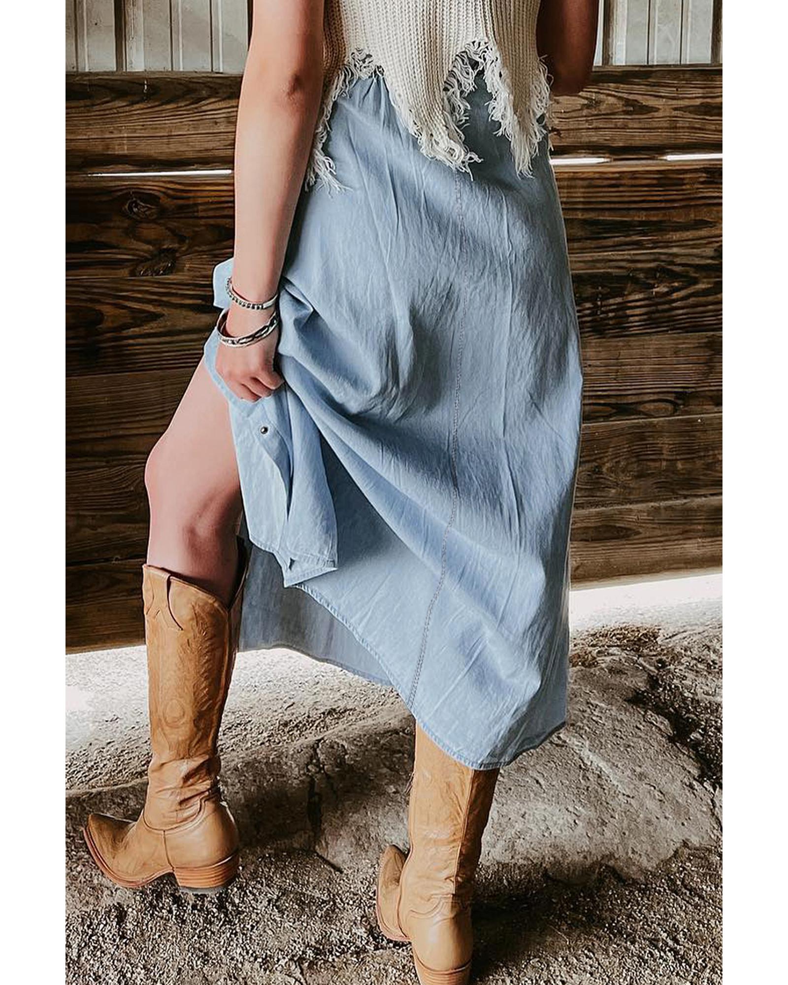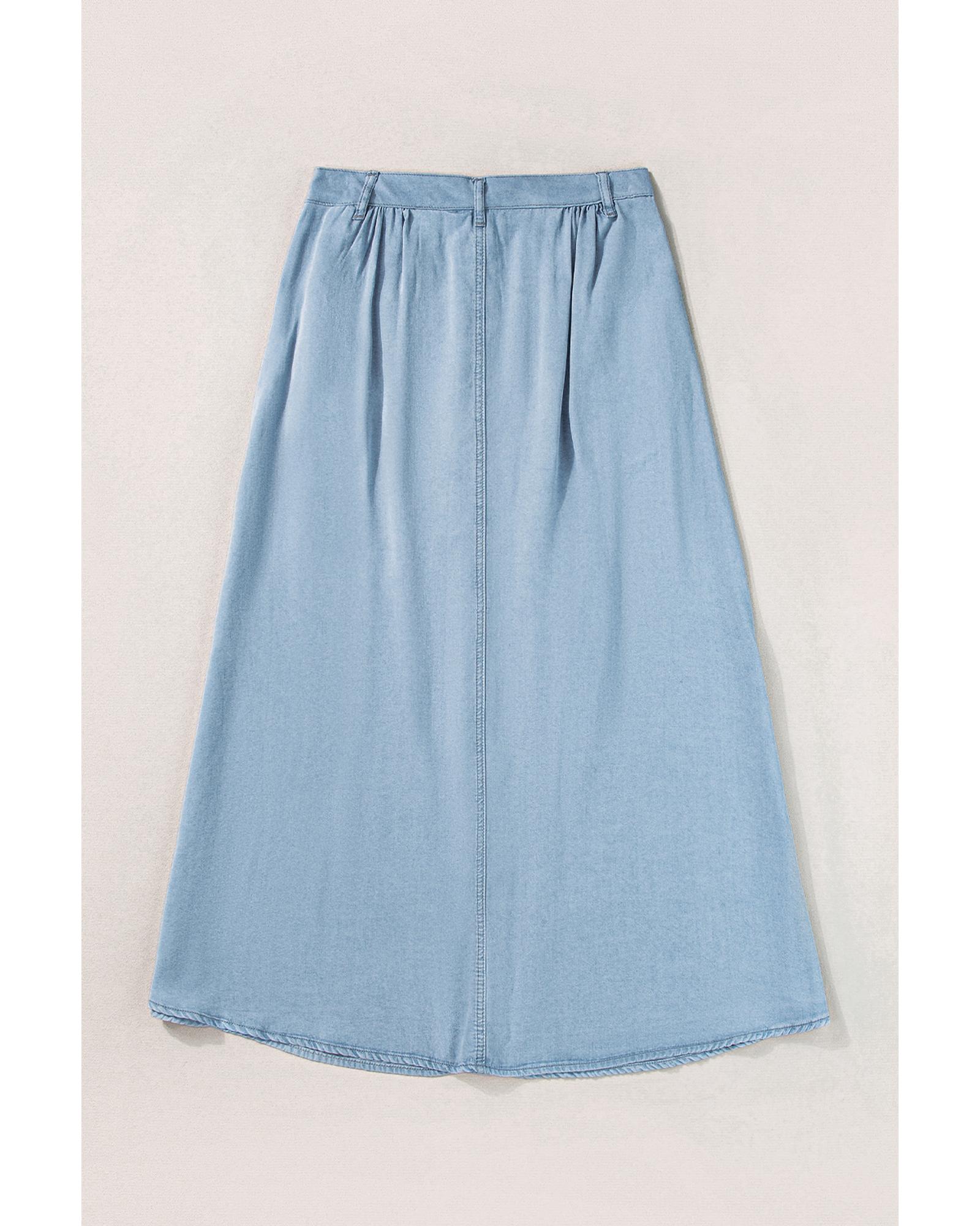 - Mist Blue Fully Buttoned Long Denim Skirt
