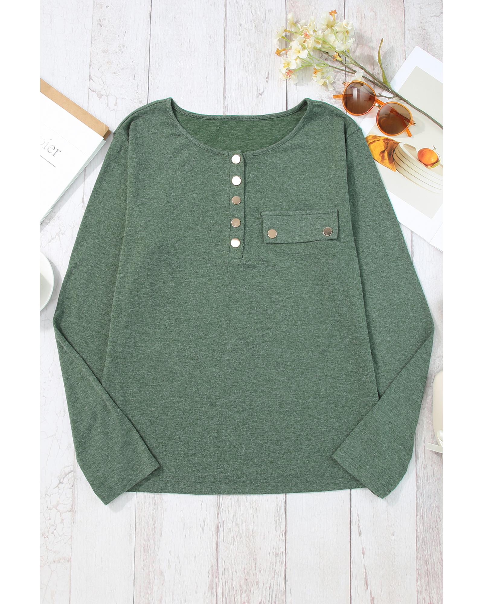 Mist Green Long Sleeve Snap Button Henley Top – XL