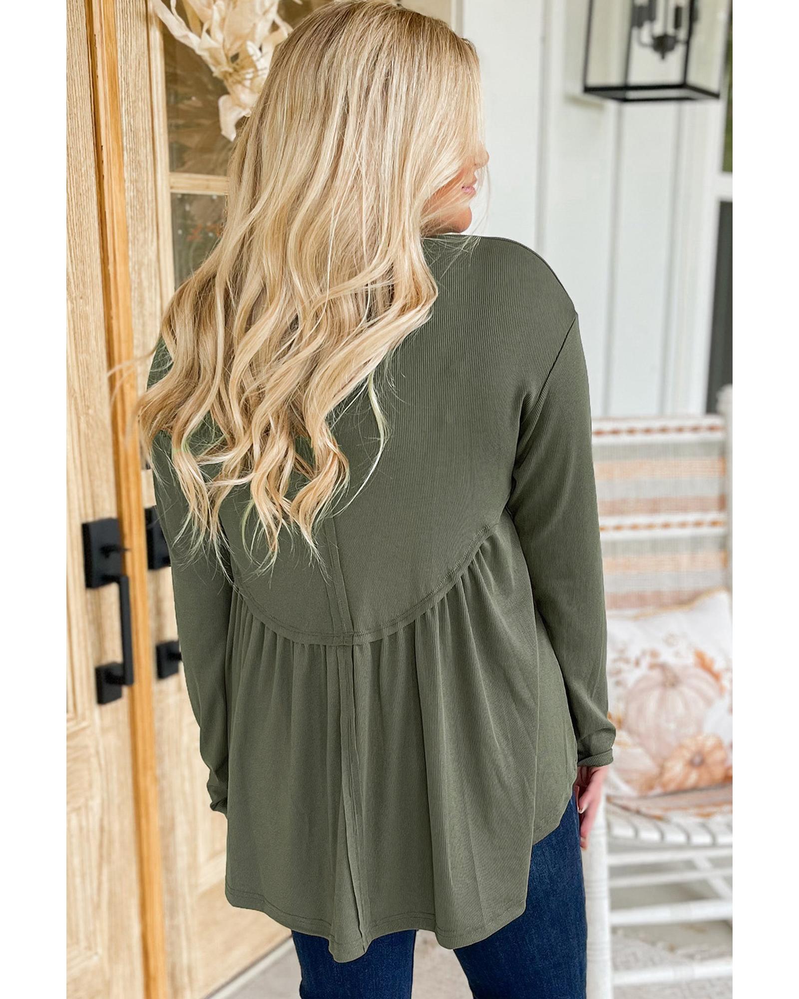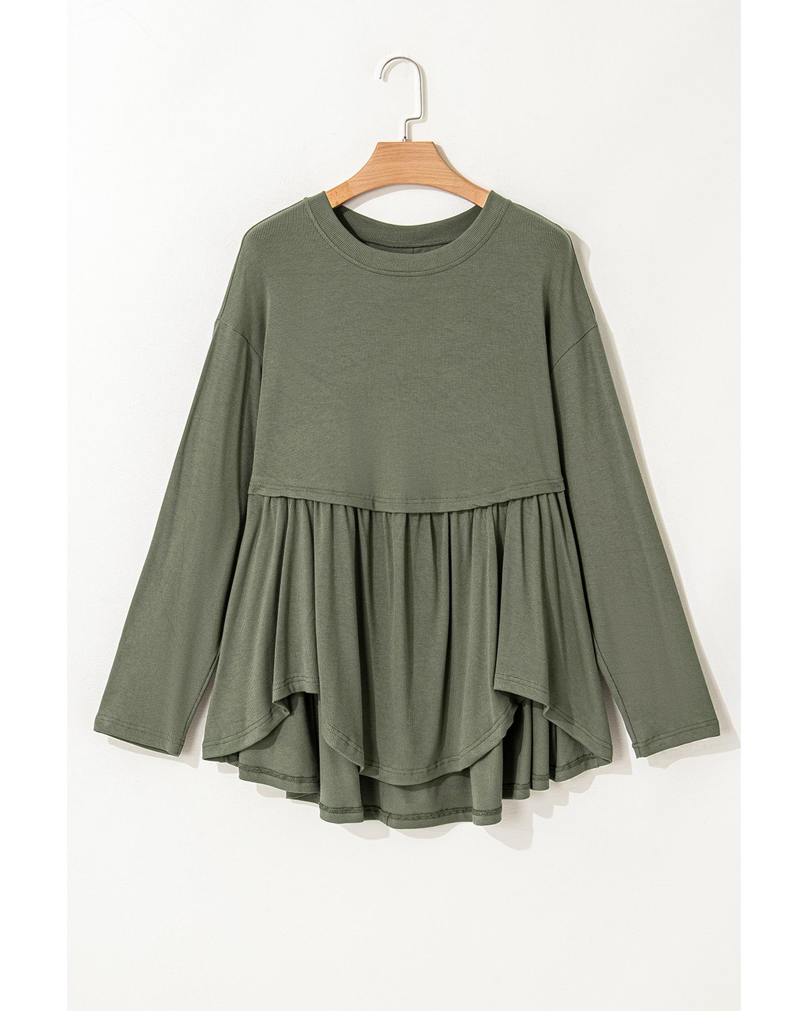 - Mist Green Plus Size Thermal Knitted Babydoll Flare Top