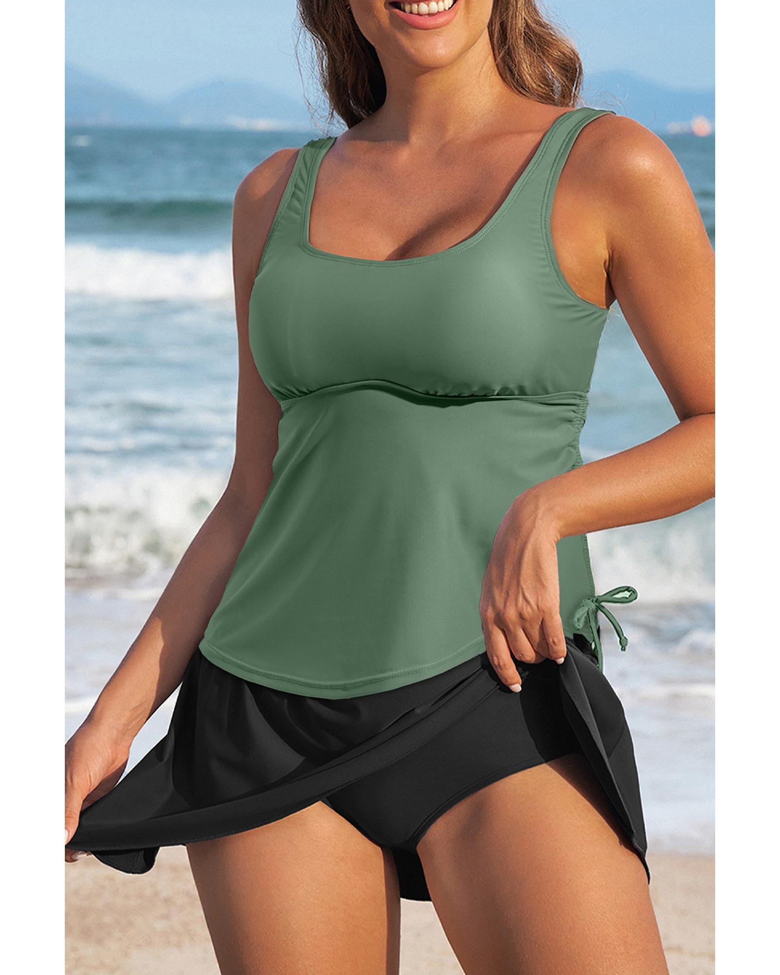 - Mist Green Scoop Neck Adjustable Tankini and Matching Skort Bathing Suit