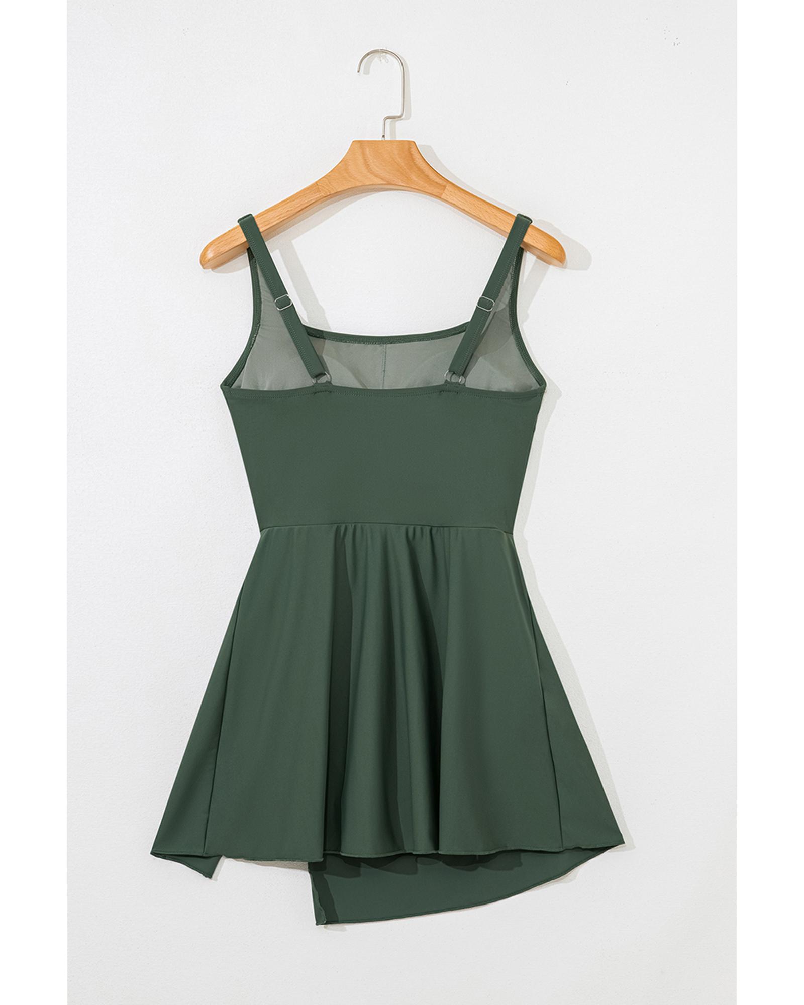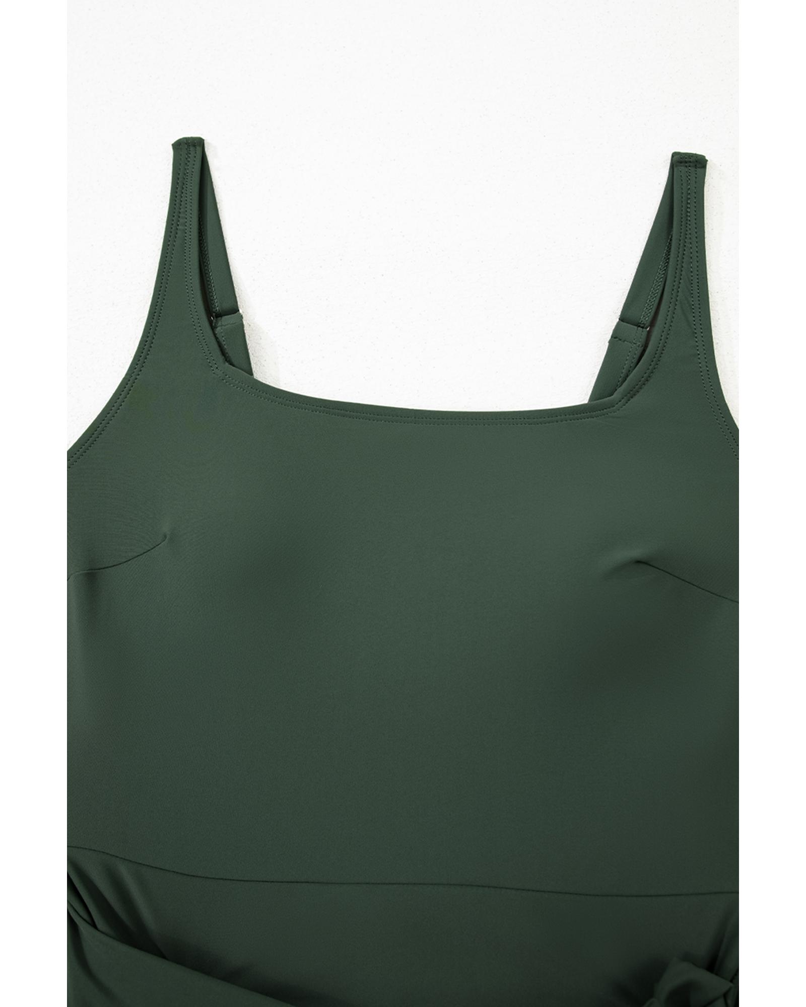 Mist Green Side Tied Waist Square Neck Adjustable Straps A-line One Piece Swim Dress – XL