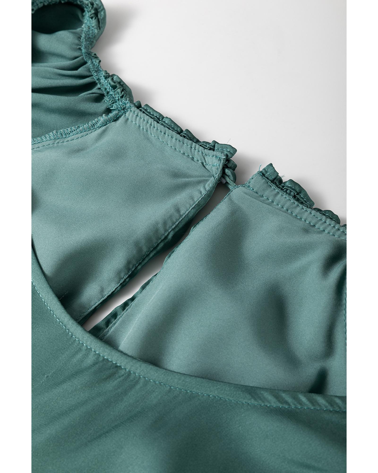 Mist Green Tiered Ruffled Puff Sleeve Loose Fit Mini Dress – L