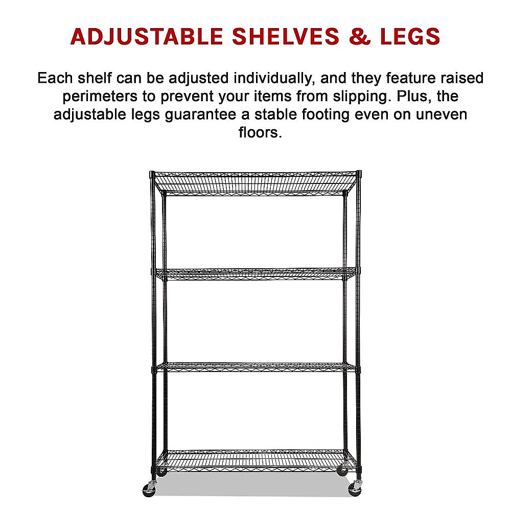 Crafted from durable steel, this four-shelf unit is built to withstand the test of time. Its spacious wireform shelves offer ample storage space for your tools and equipment, while ensuring they remain visible and easily accessible.