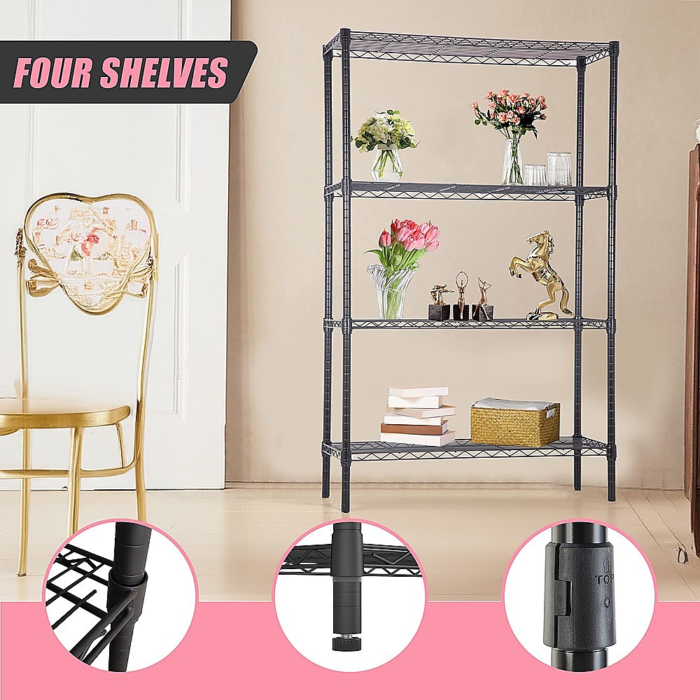Say goodbye to your organization worries at home and work with the robust and long-lasting four-shelf storage unit.
