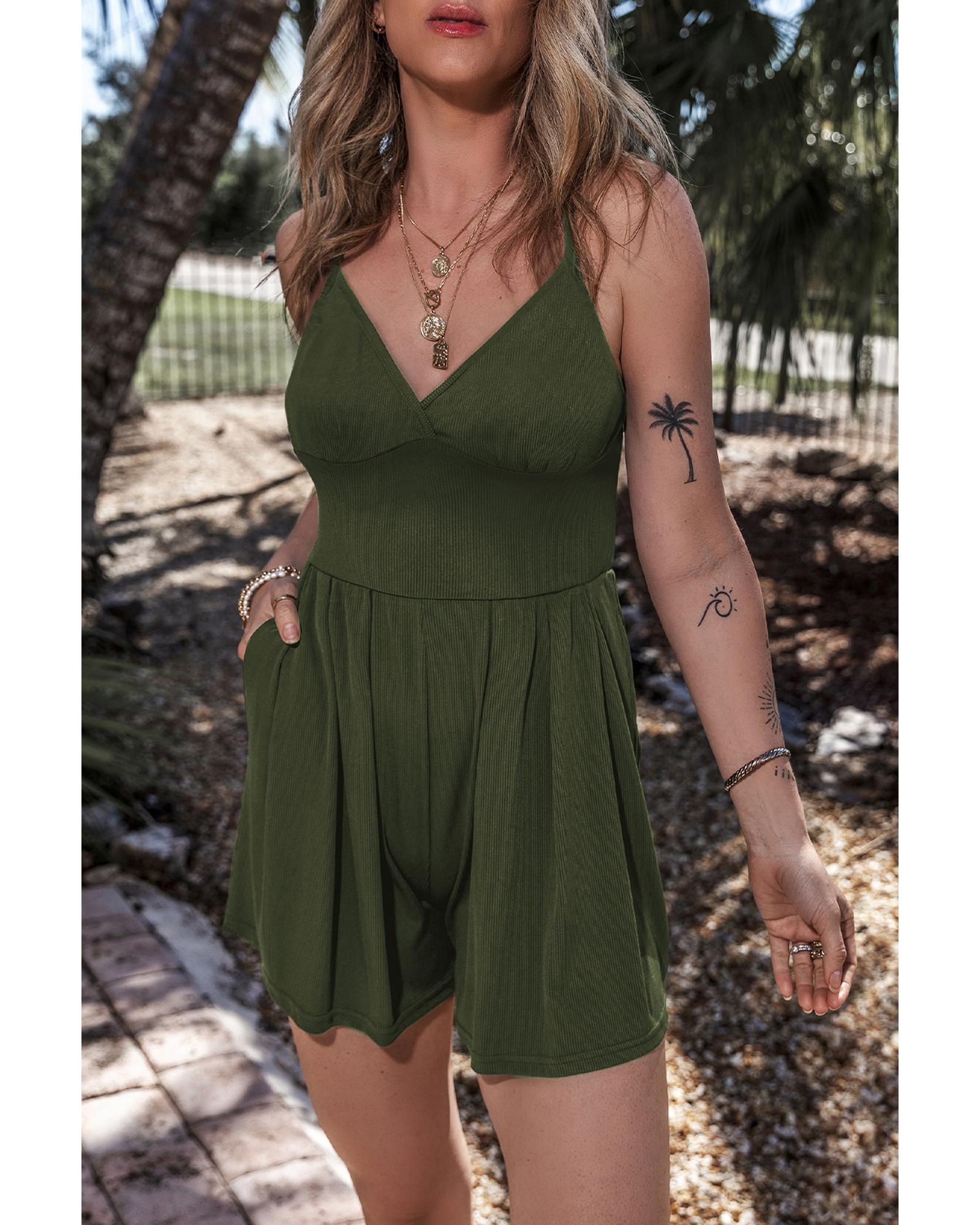 - Moss green romper with spaghetti straps