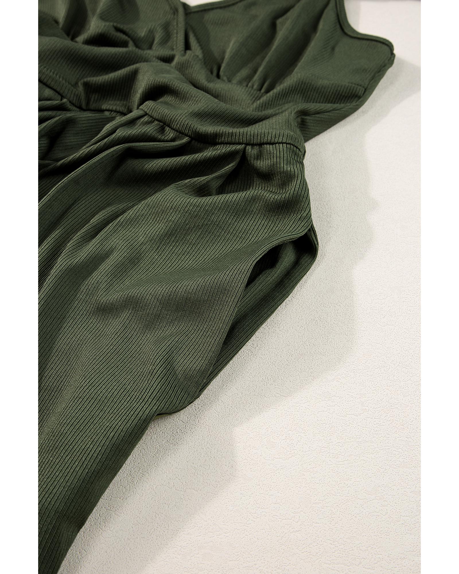Moss Green Spaghetti Straps Cinched Waist Ribbed Romper – L