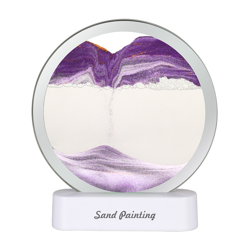 Moving Sand Art Picture with LED Night Light Base – USB Powered, Relaxing Desktop Decor(Purple)