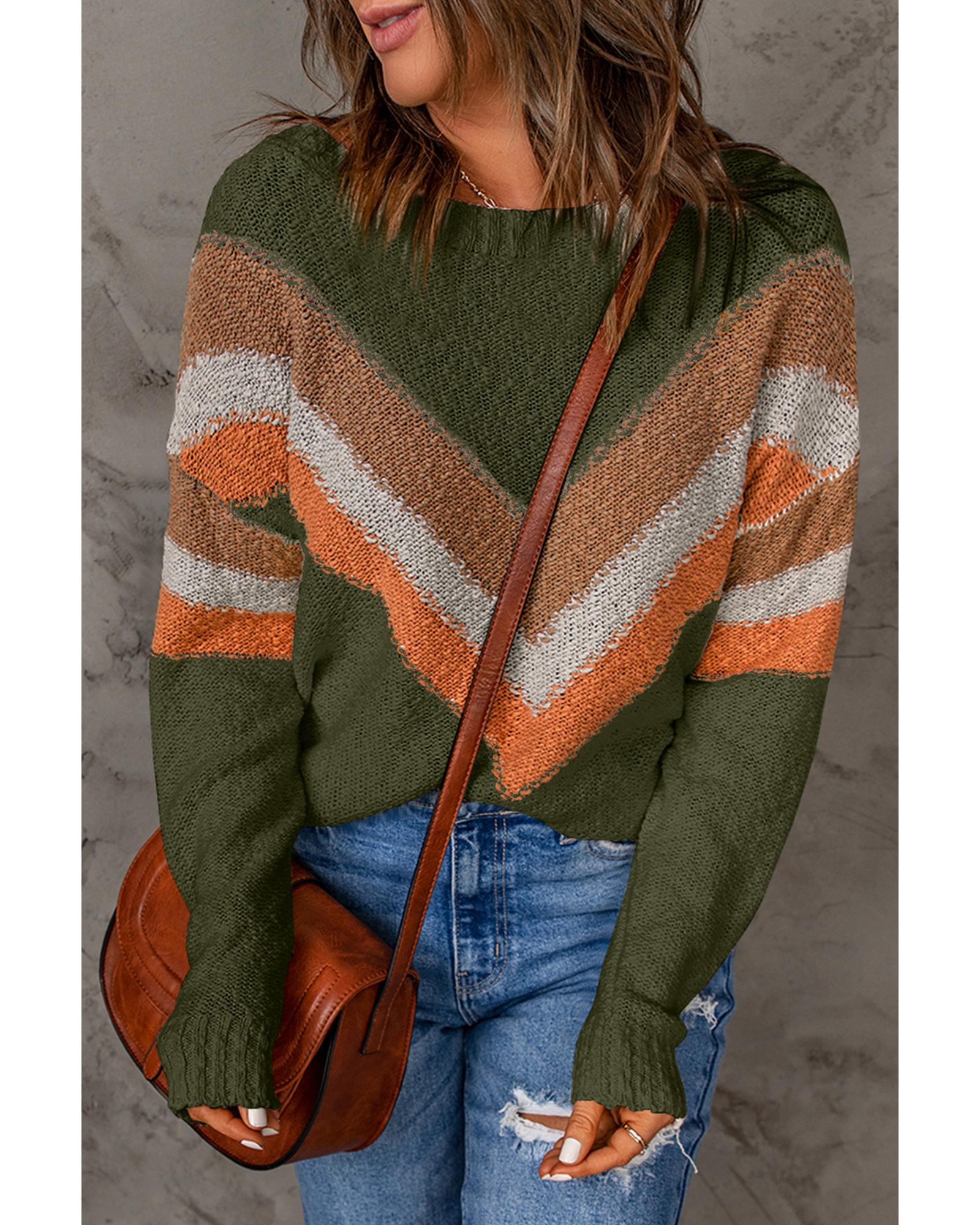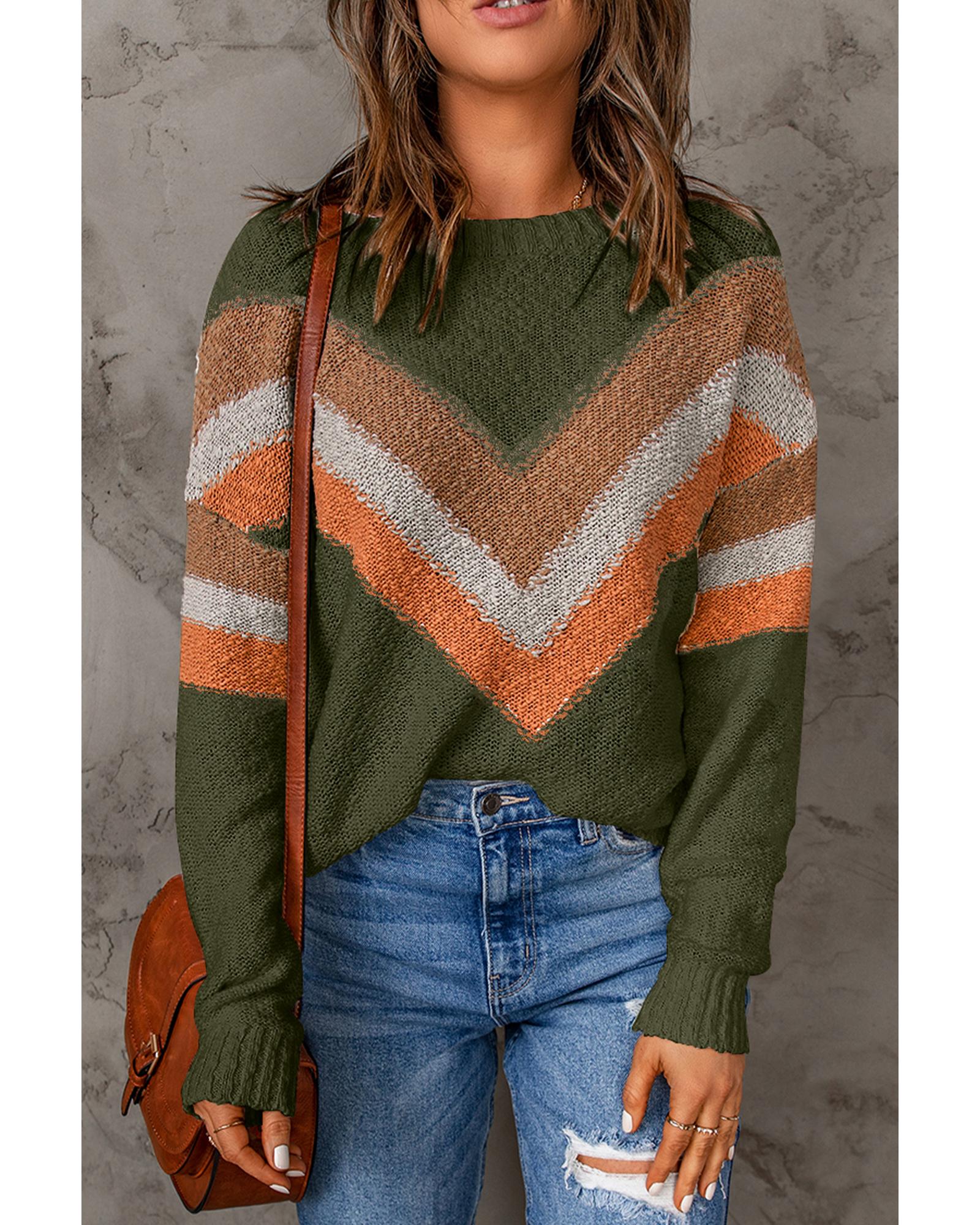 Azura Exchange Multicolor Color Block Drop Shoulder Round Neck Knit Sweater - M