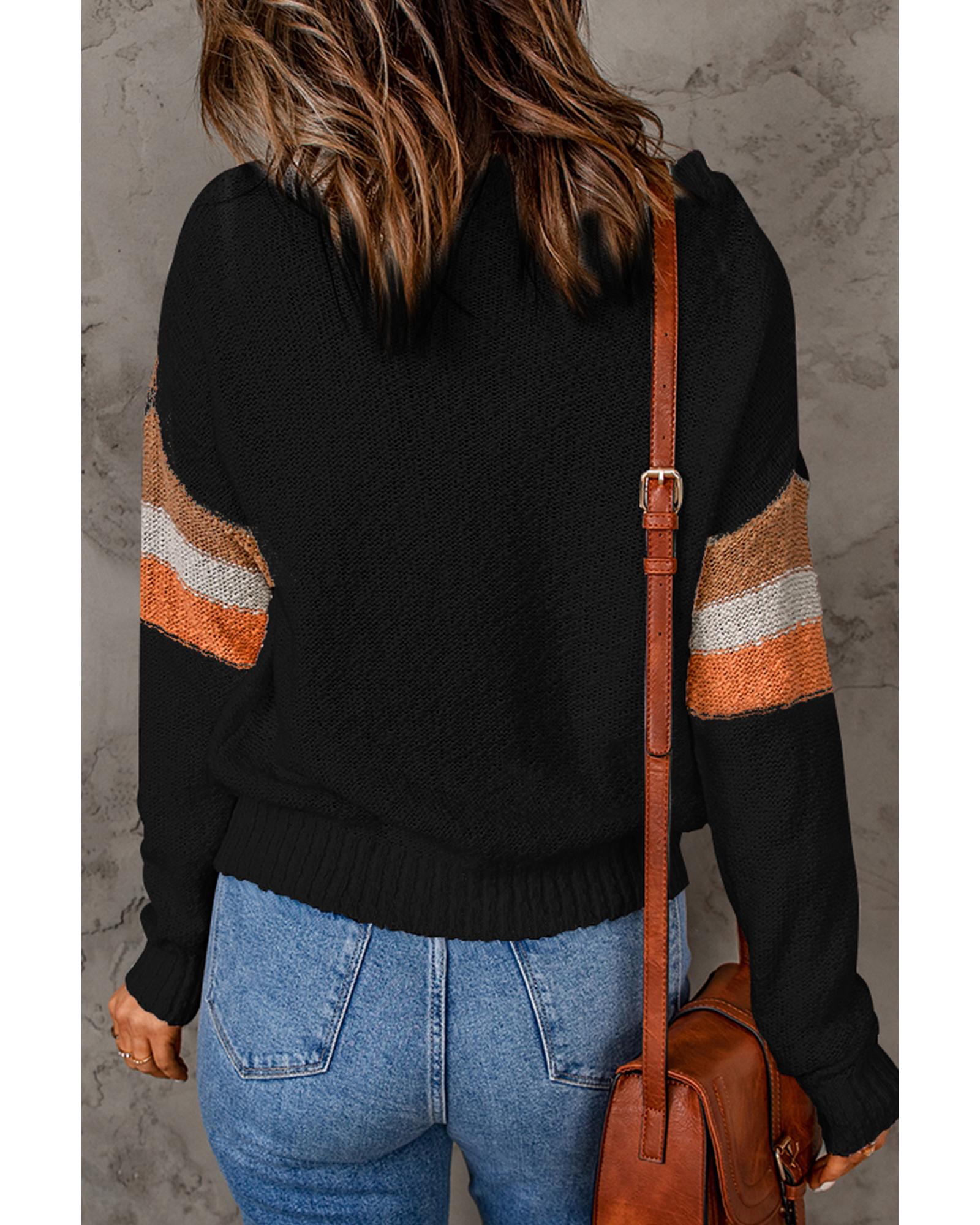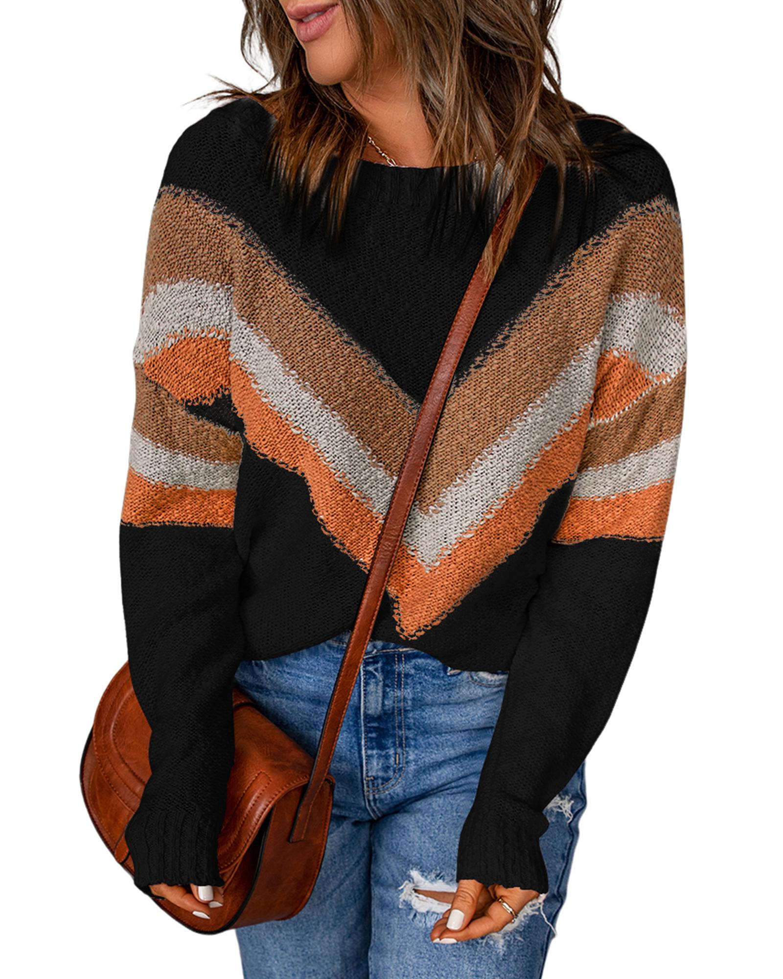 - Multicolor Chevron Striped Drop Shoulder Sweater