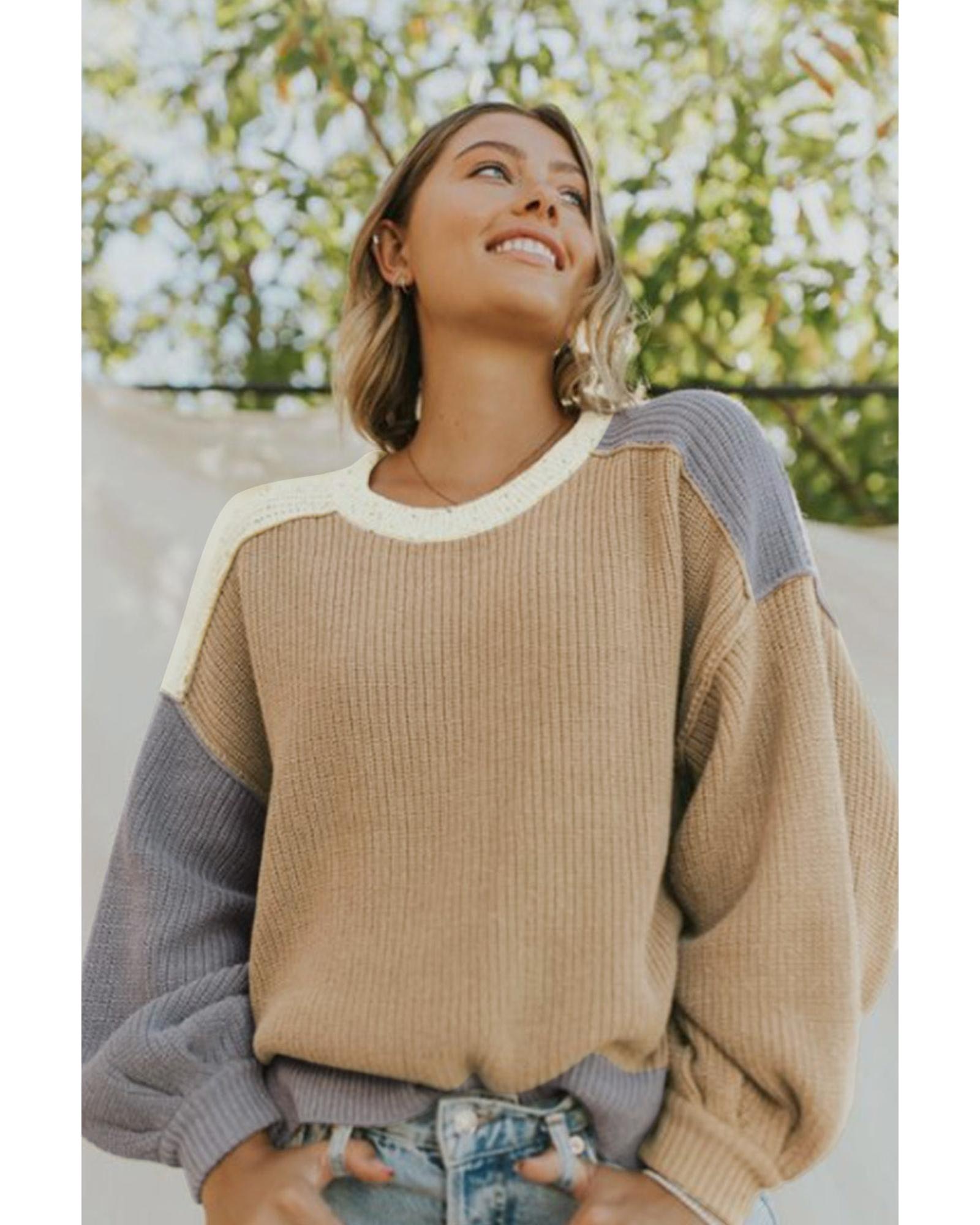 Multicolor Color Block Patchwork Baggy Sweater – L