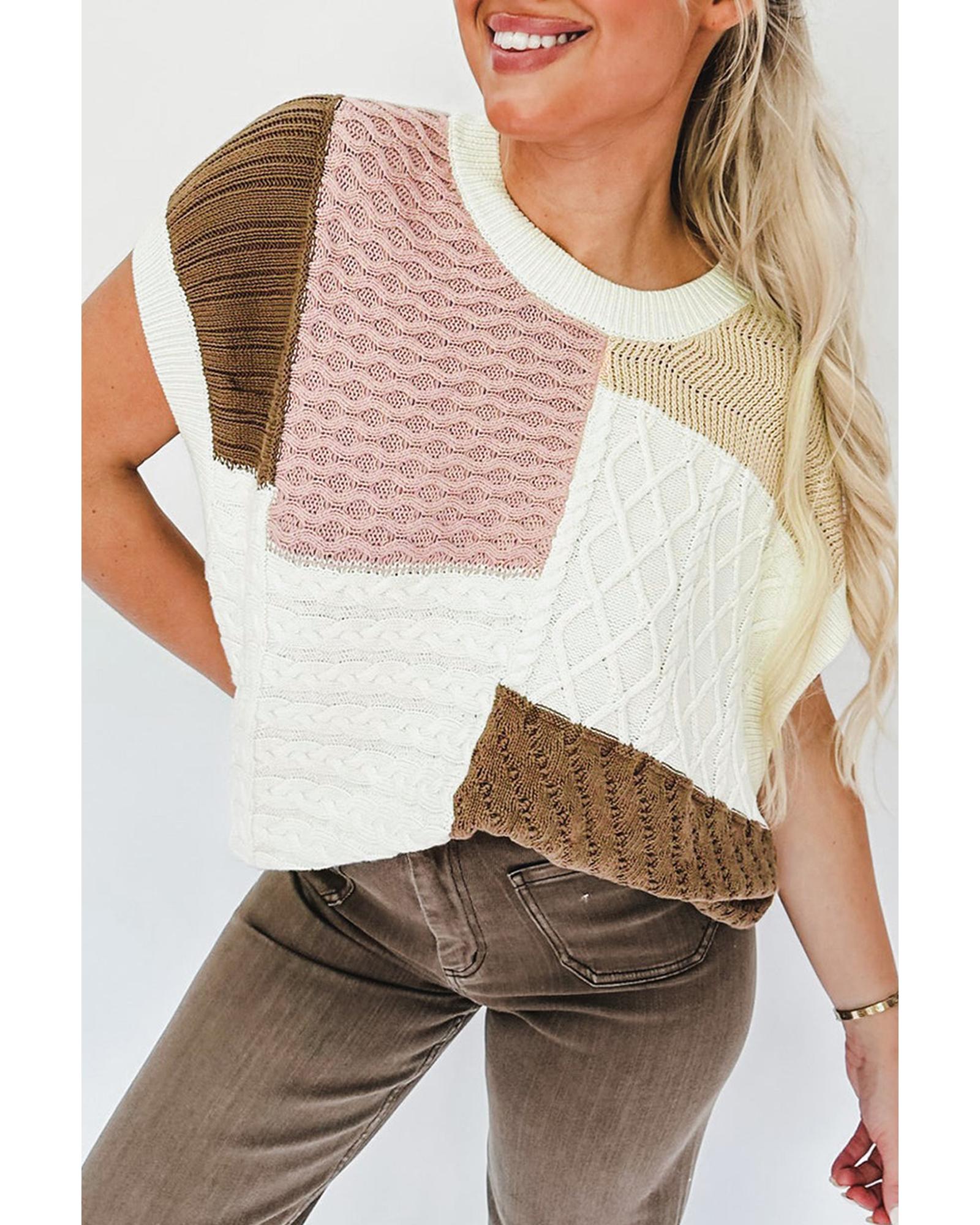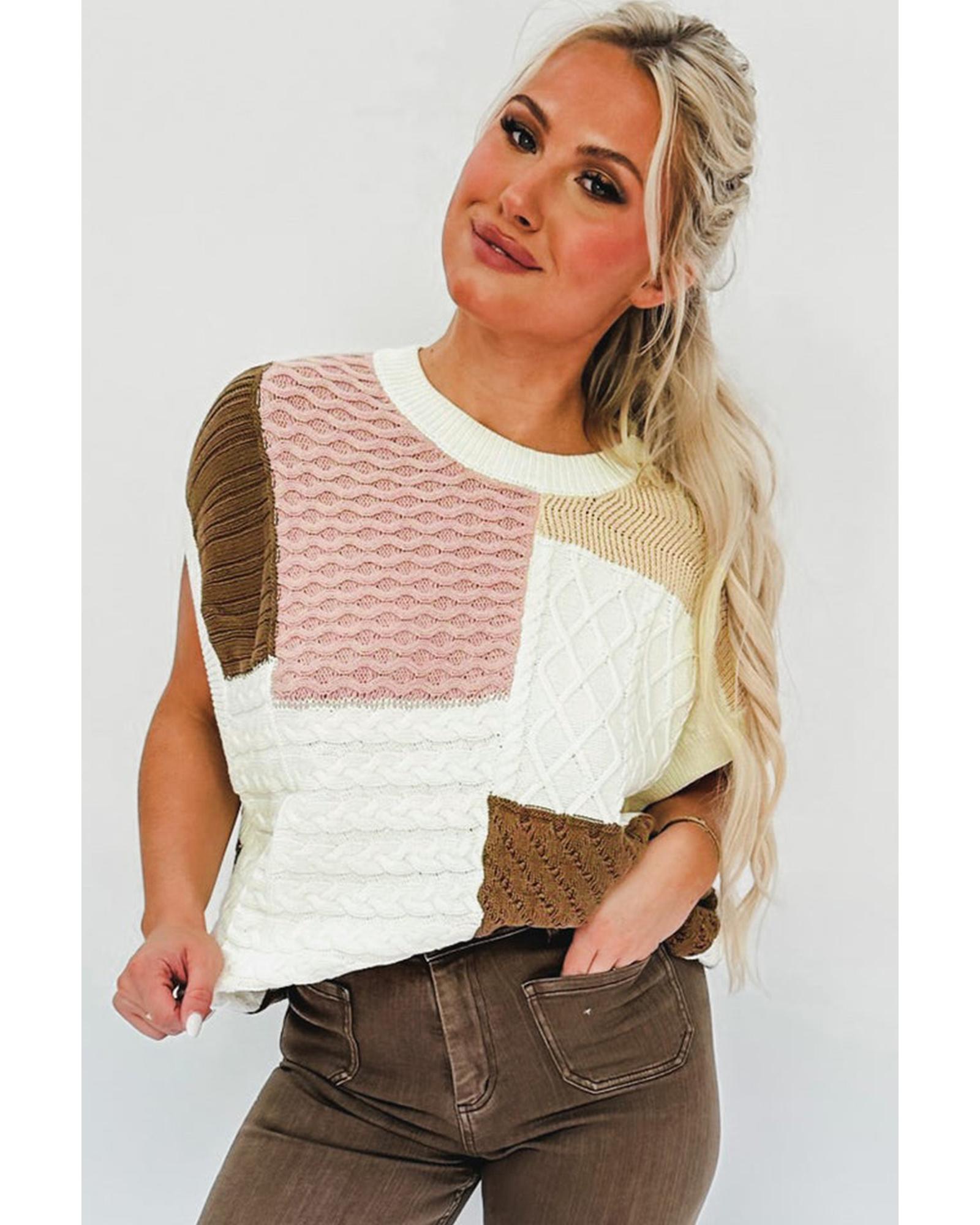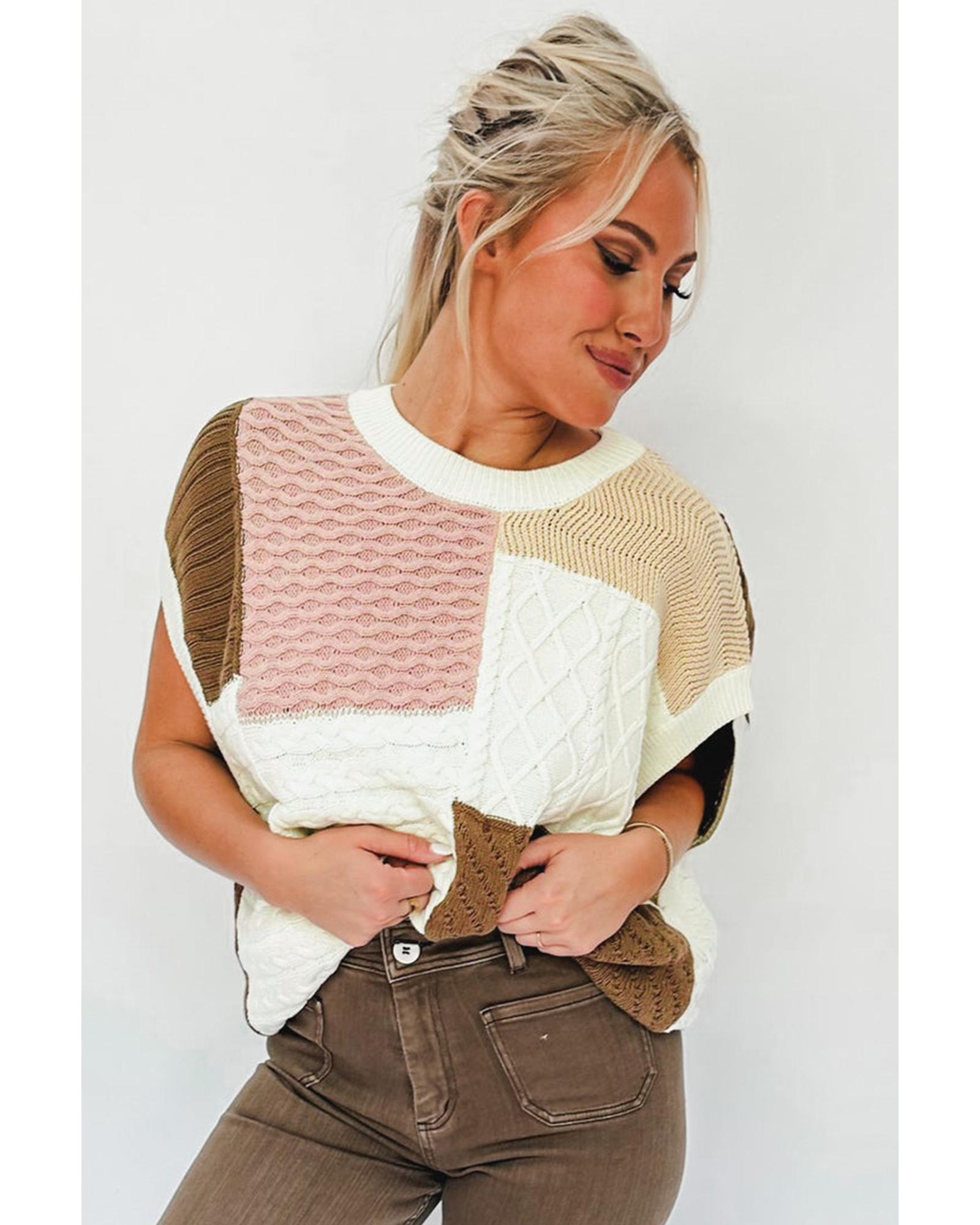 Multicolor Colorblock Mix Textured Sweater Tee – L