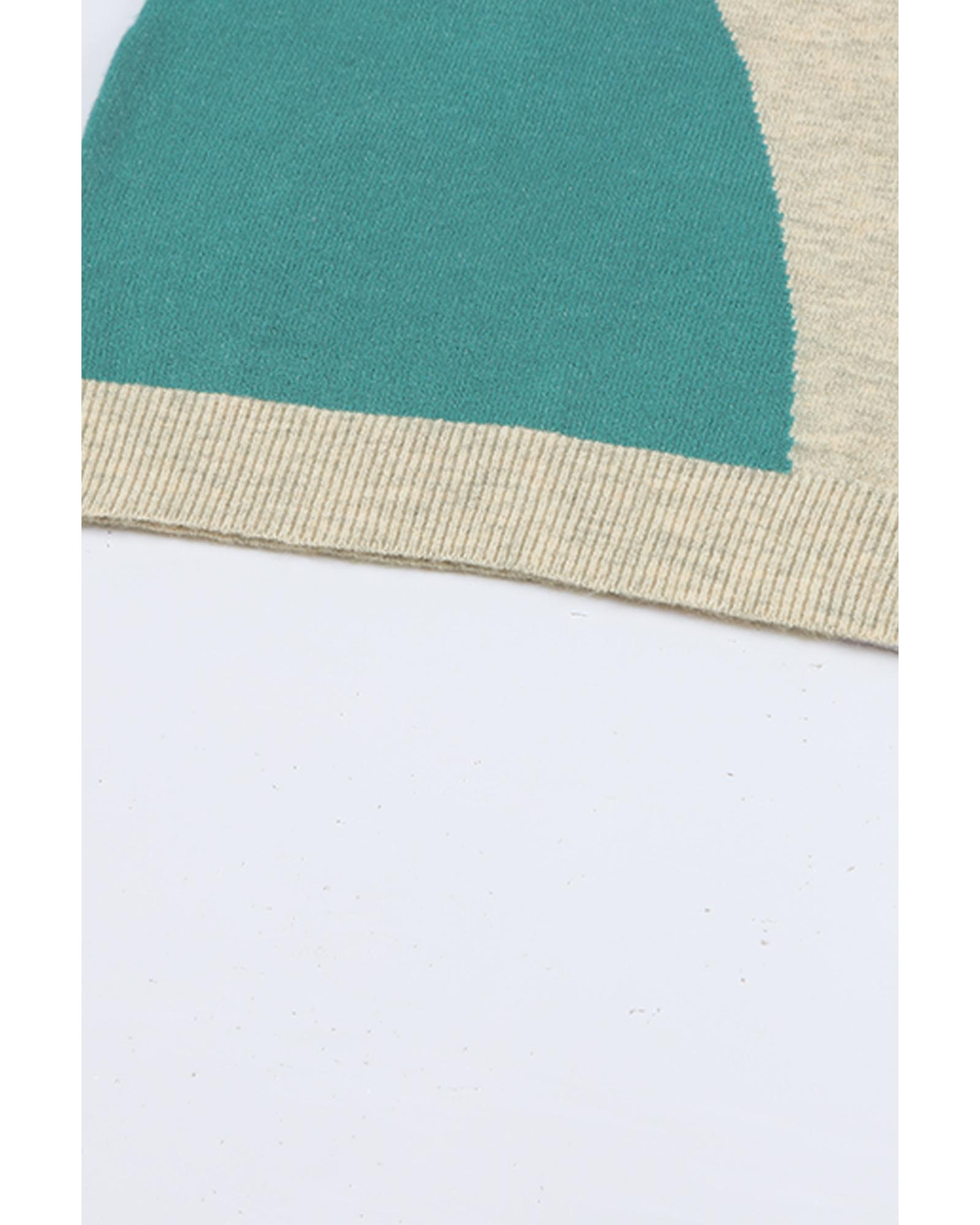 Multicolor Colorblock Ribbed Trim Round Neck Sweater – M