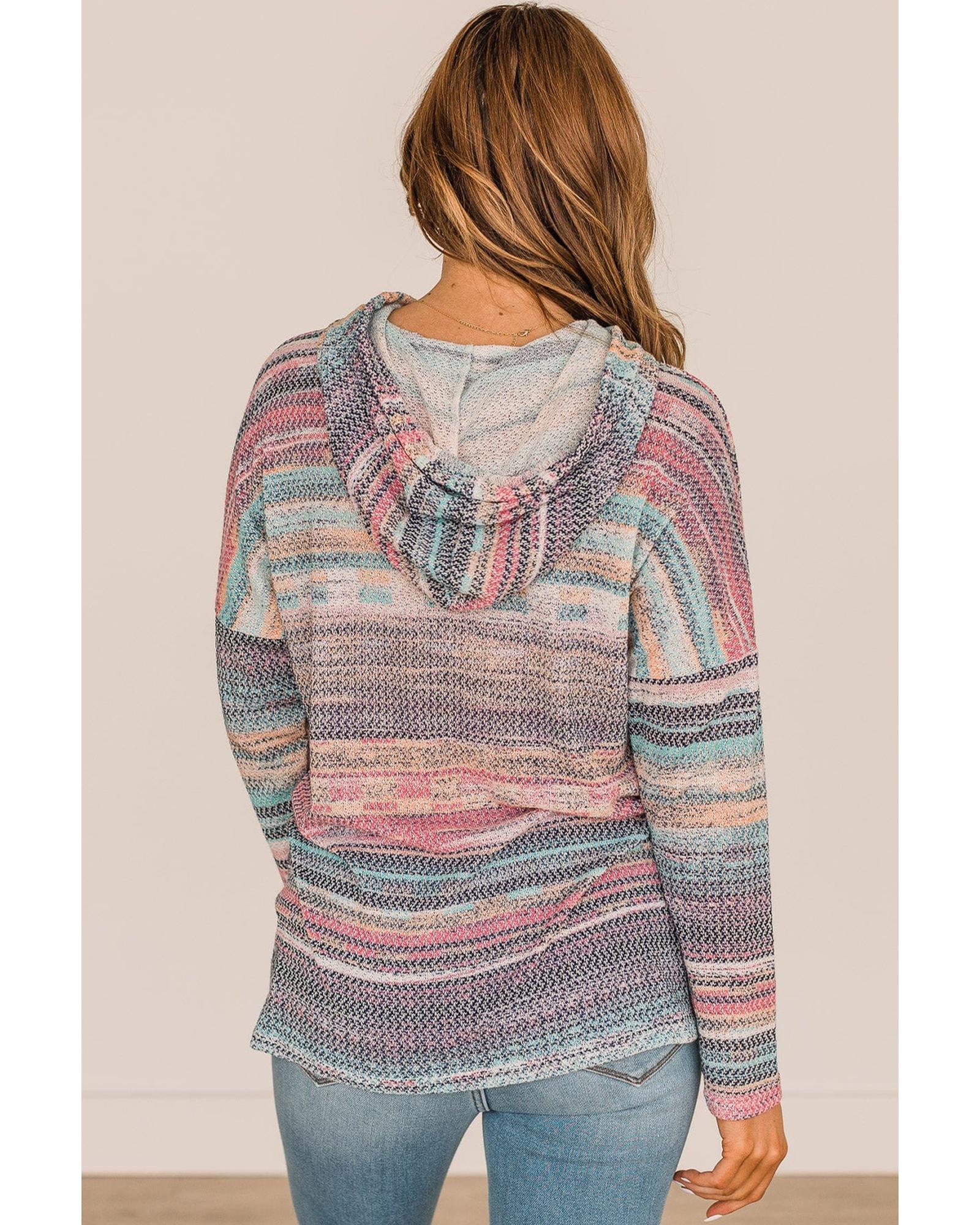Multicolor Striped Print Cable Knit Drop Shoulder Hoodie – M