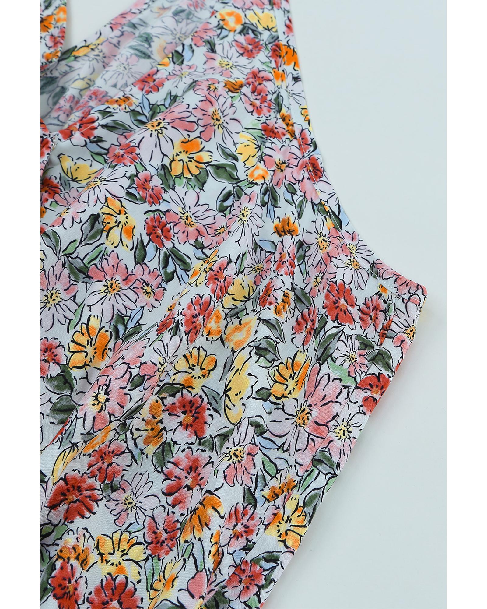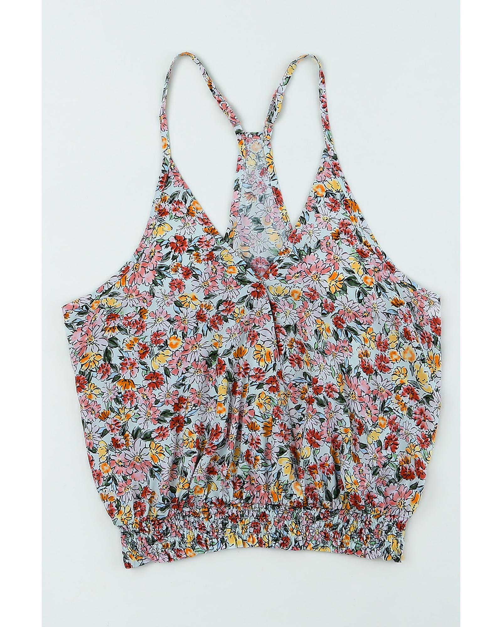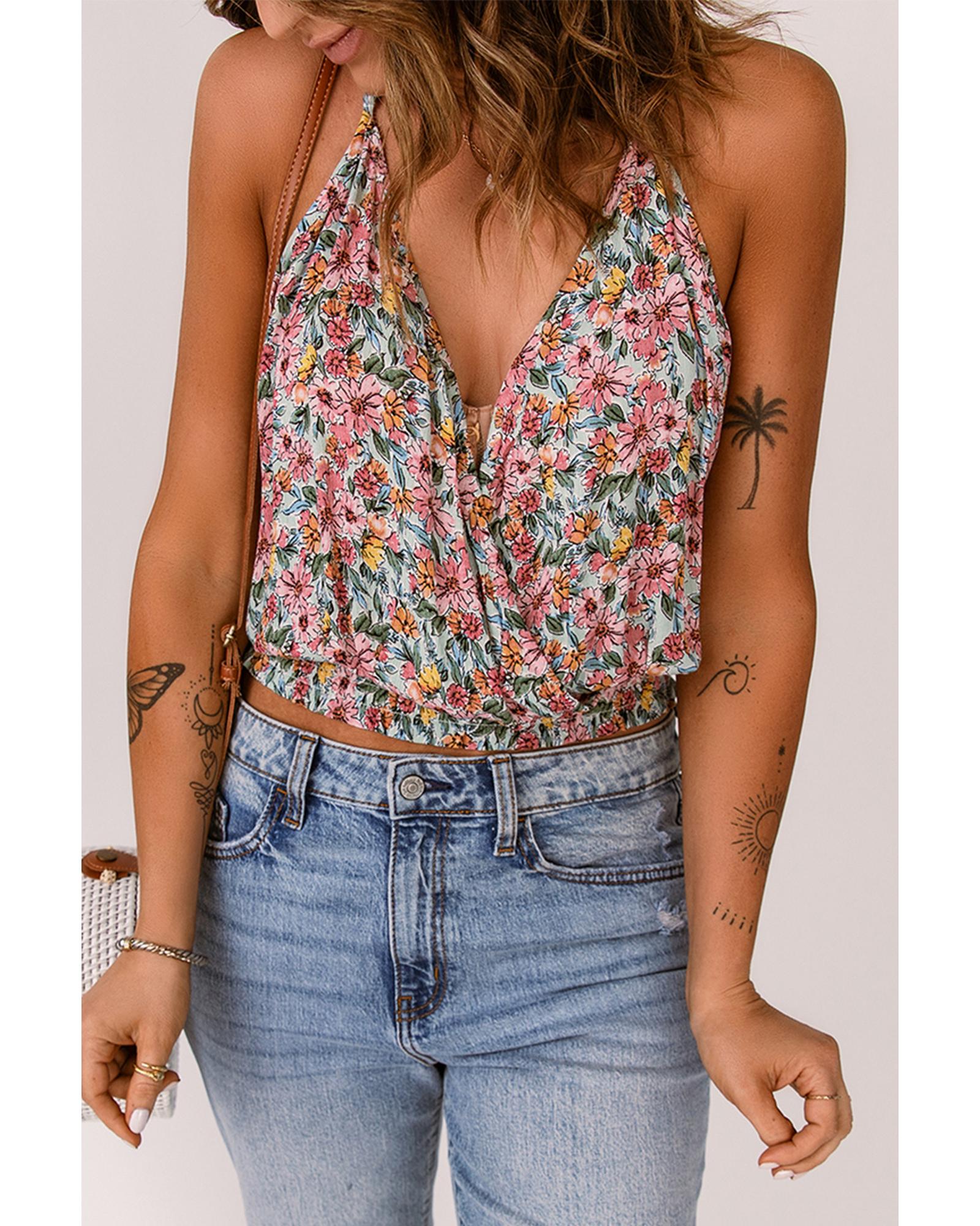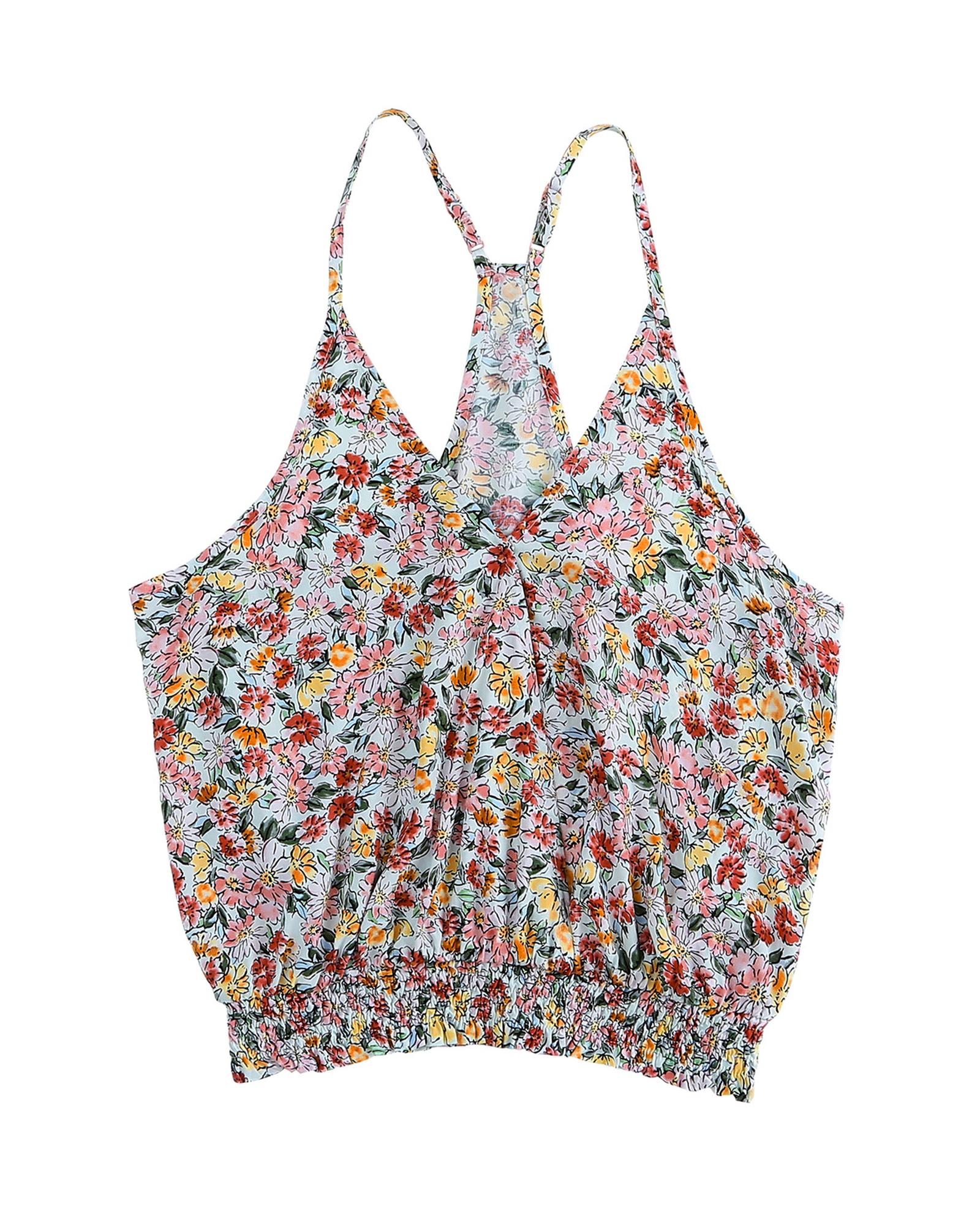 Multicolor Wrapped V Neck Floral Tank Crop Top – L