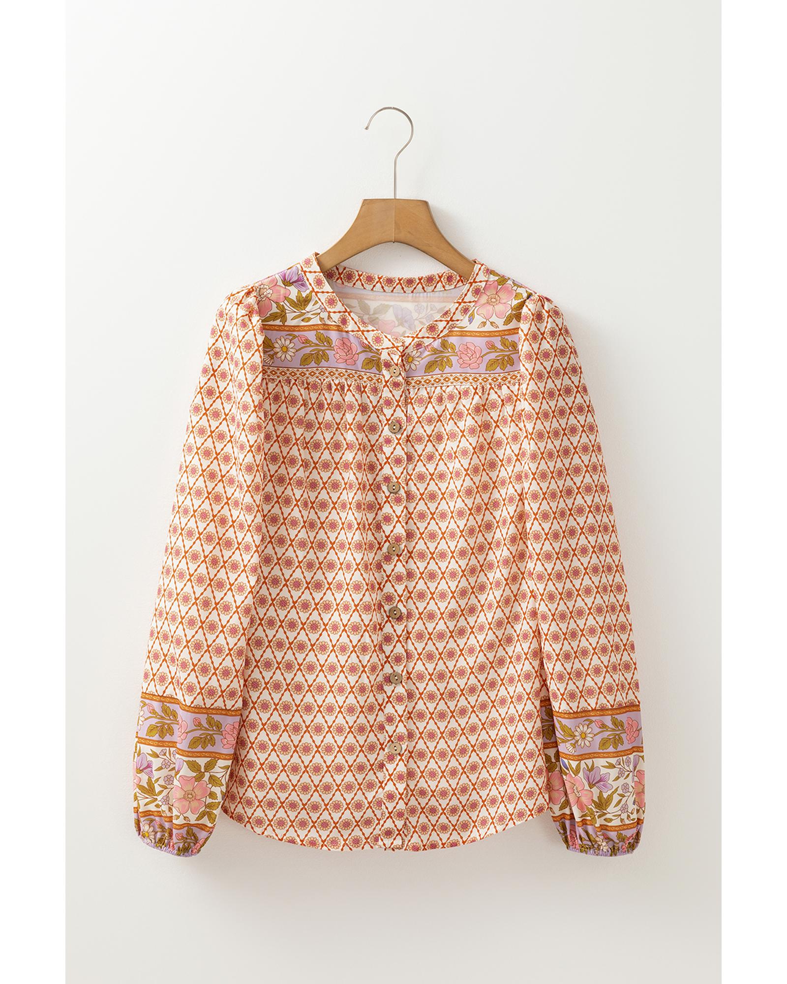 Multicolour Boho Floral Mixed Print Puff Sleeve Shirt – XL