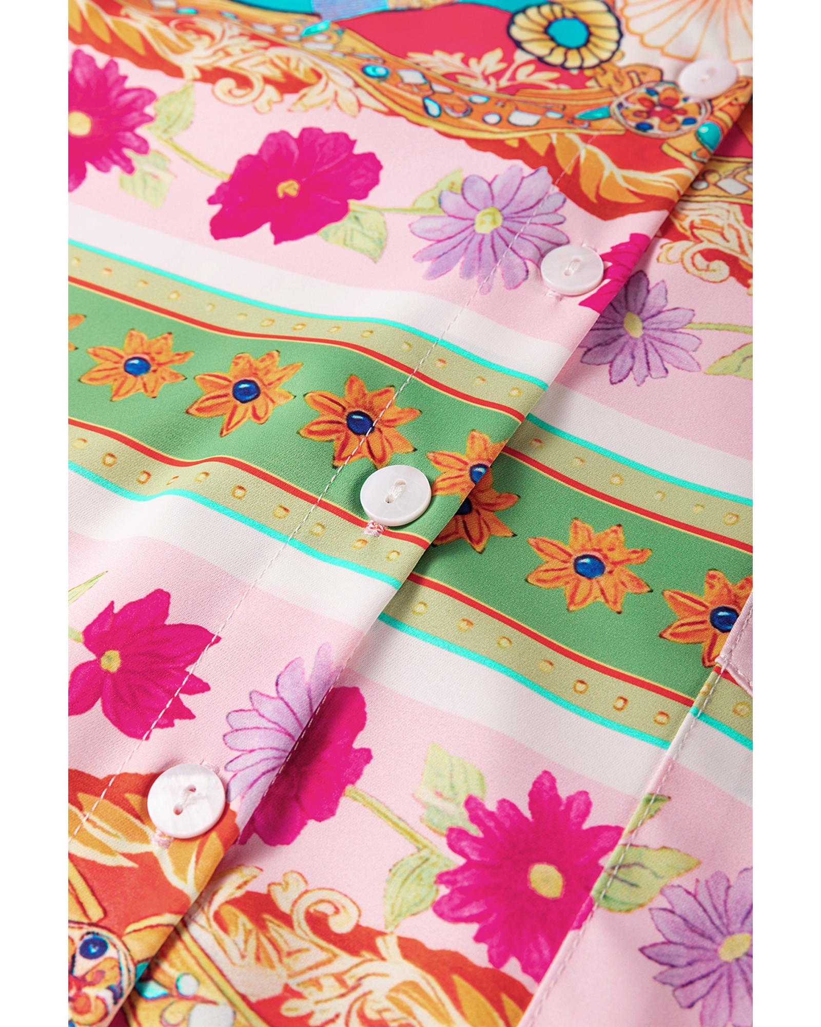 Multicolour Boho Floral Print Buttoned Long Sleeve Shirt Dress - M
