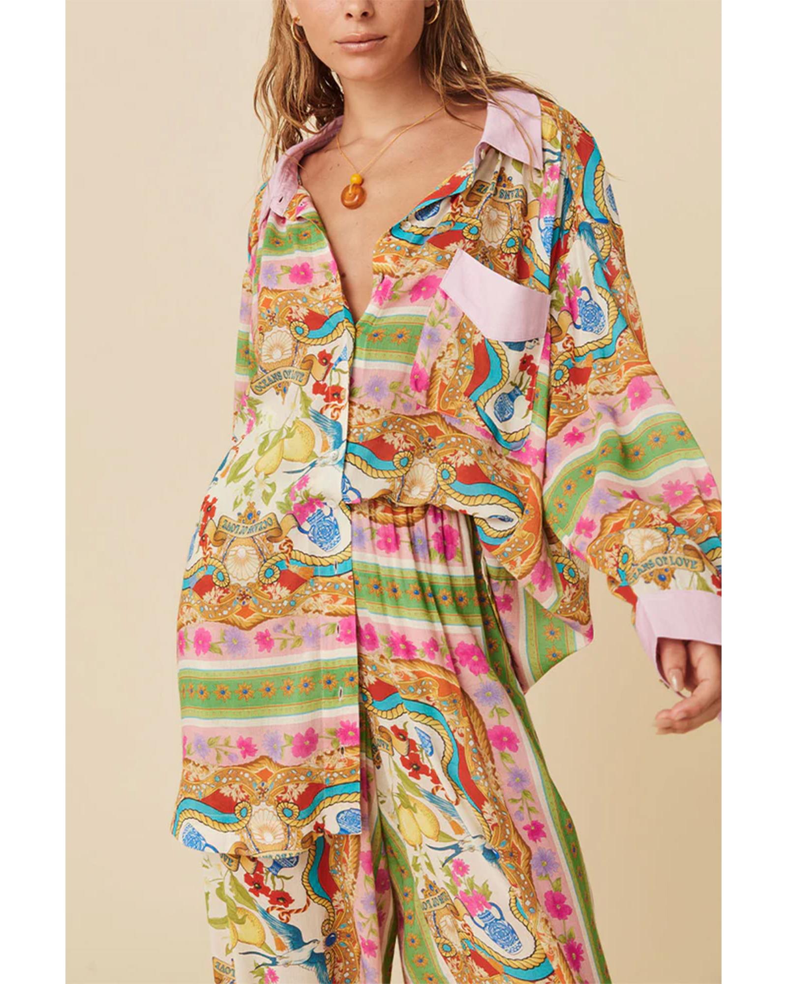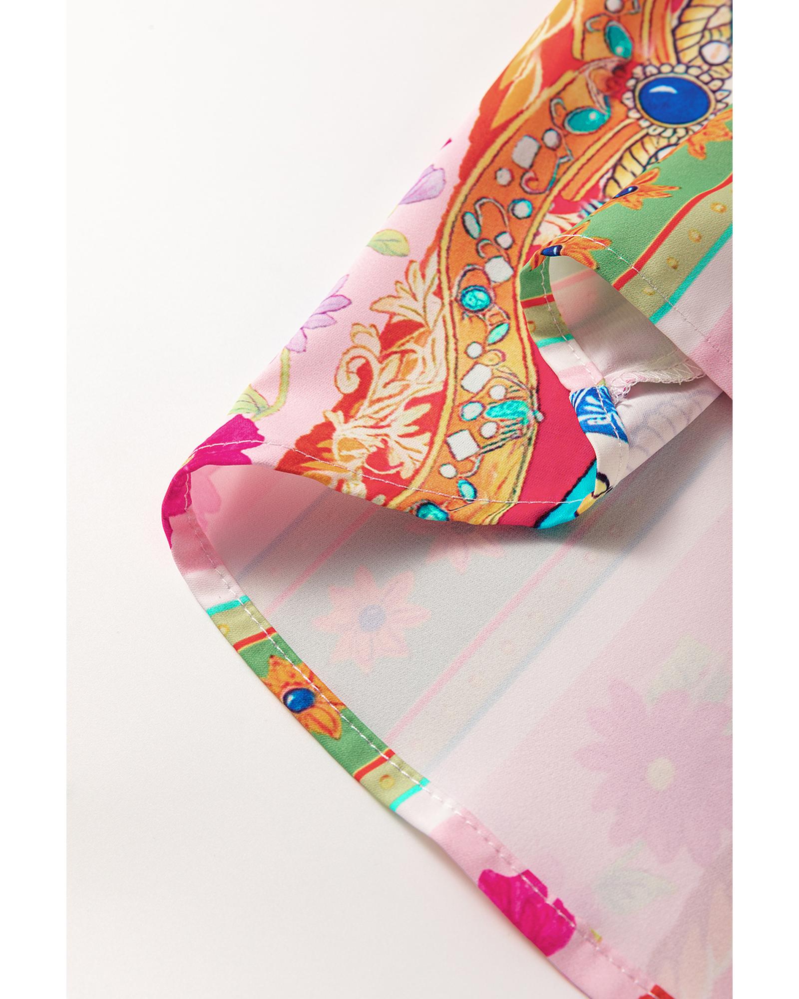 Multicolour Boho Floral Print Buttoned Long Sleeve Shirt Dress – XL