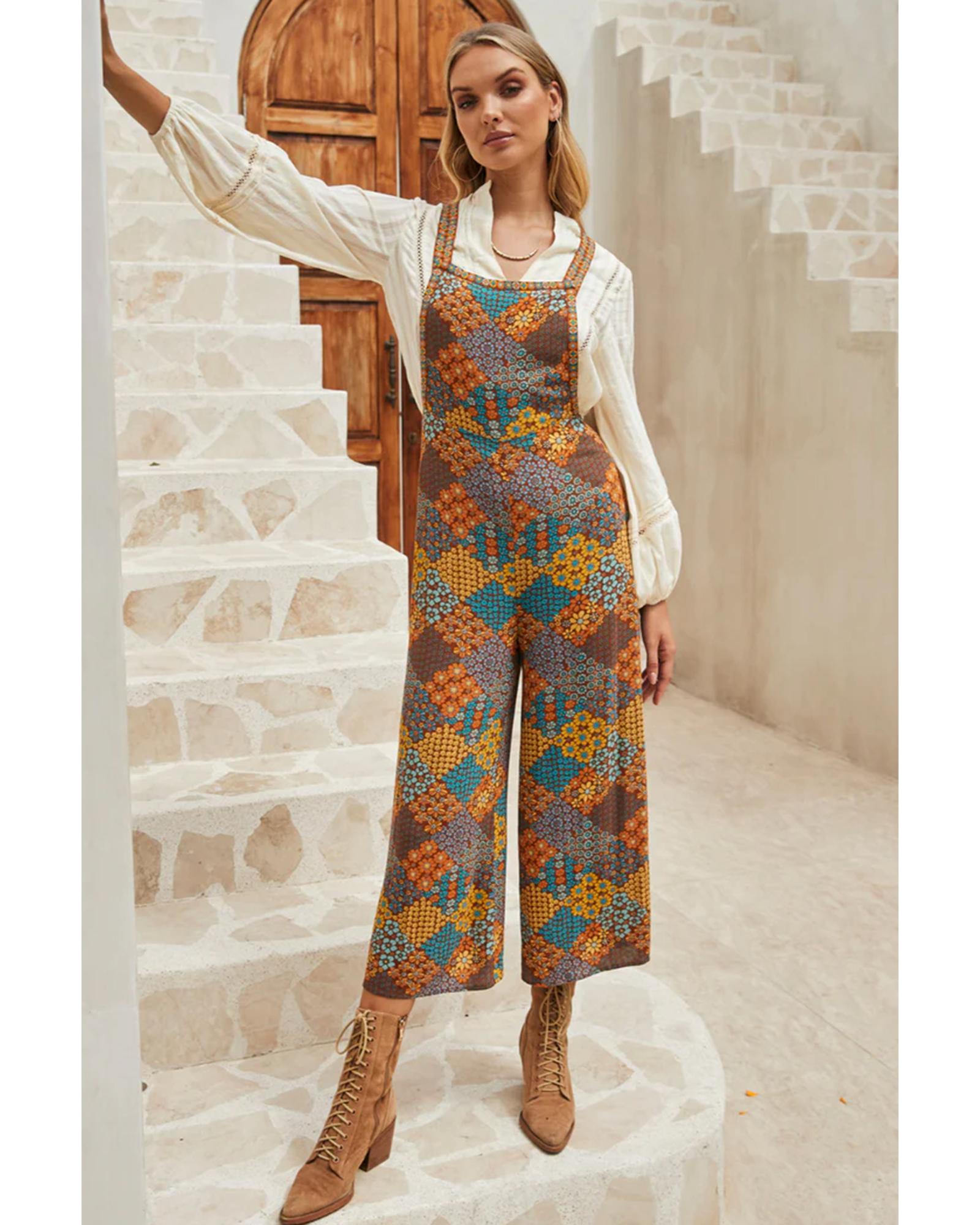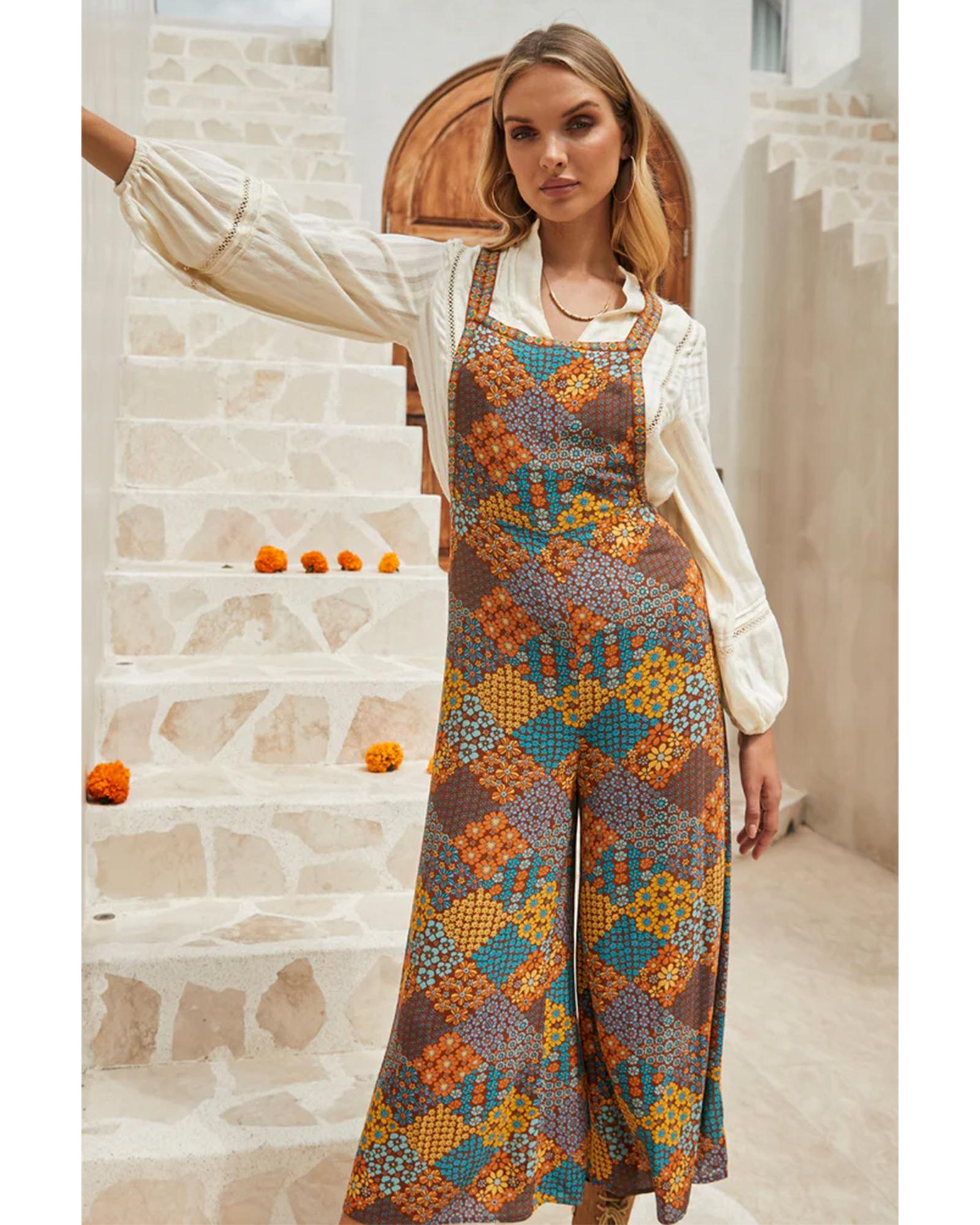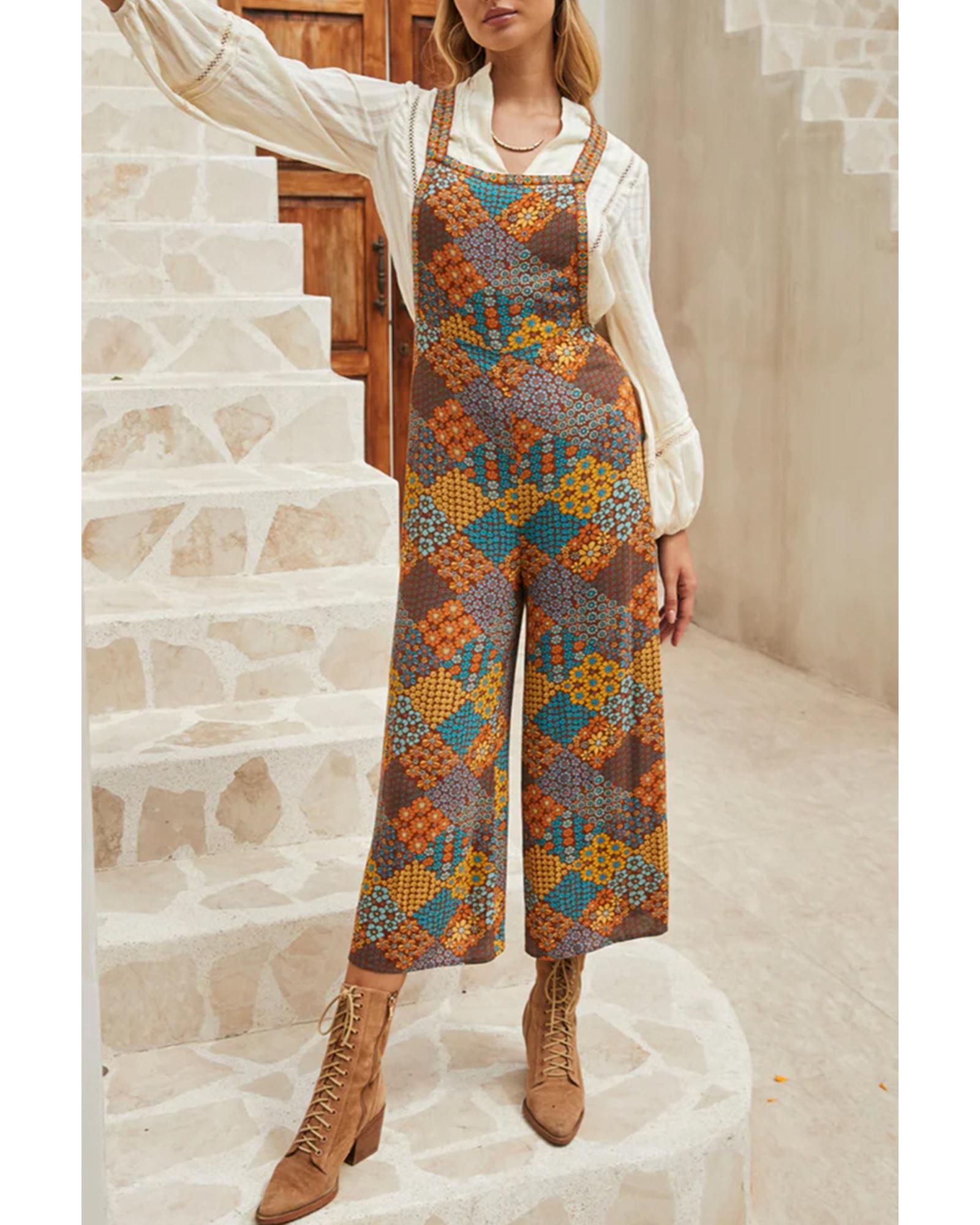 Multicolour Boho Floral Print Crossed Straps Ankle-length Jumpsuit – M