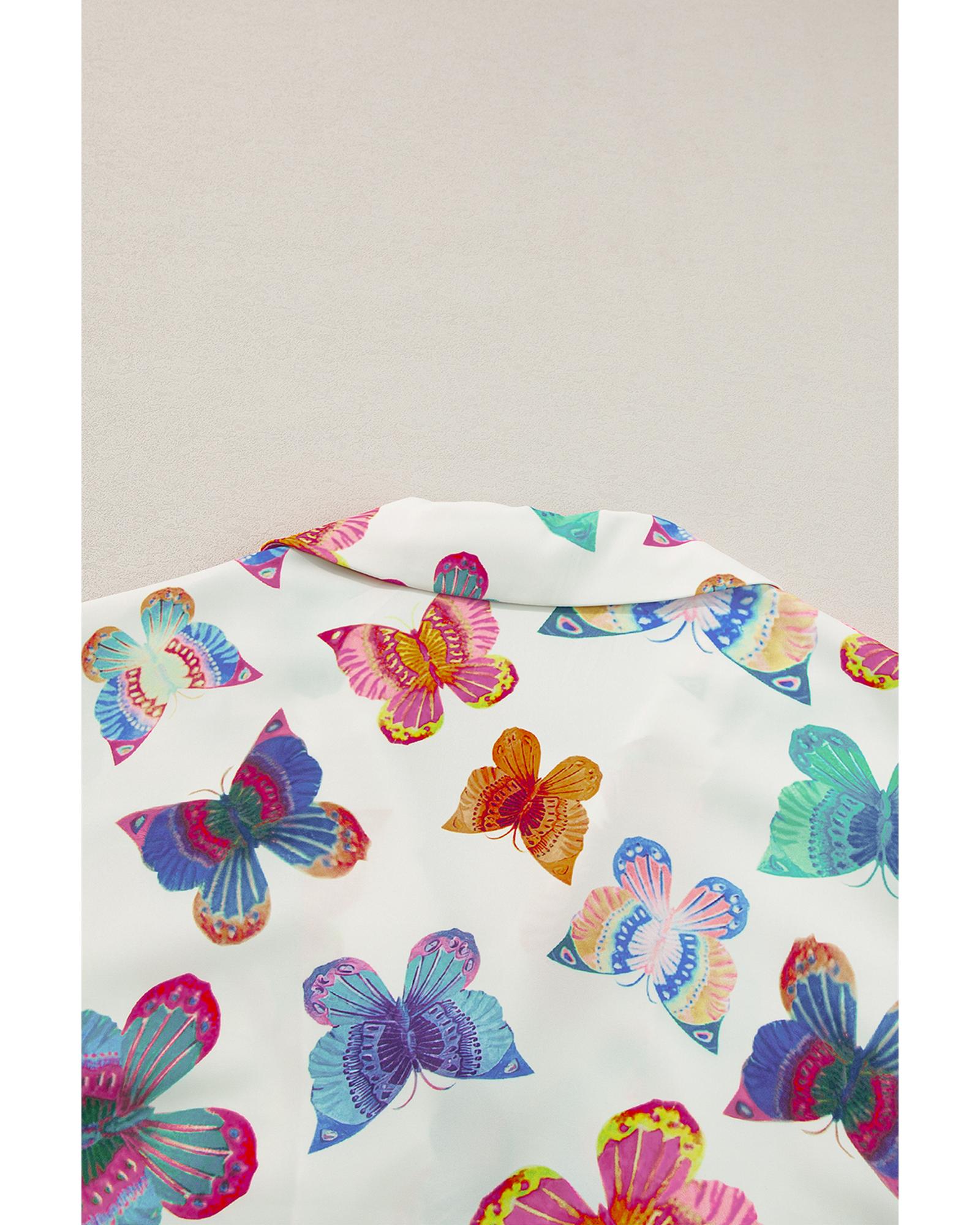 Multicolour Butterfly Pattern Short Sleeve Shirt Pajamas Set – M