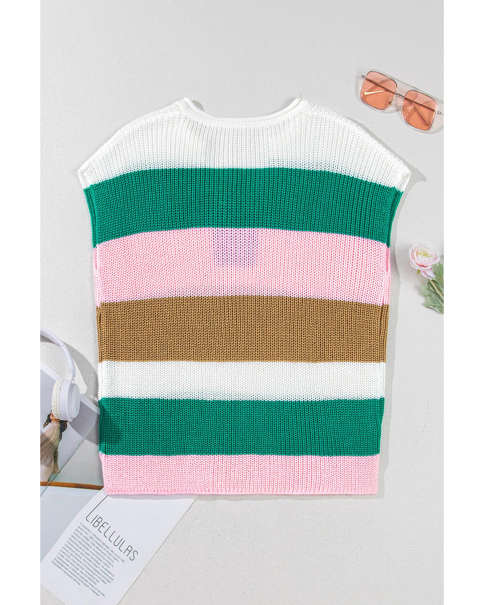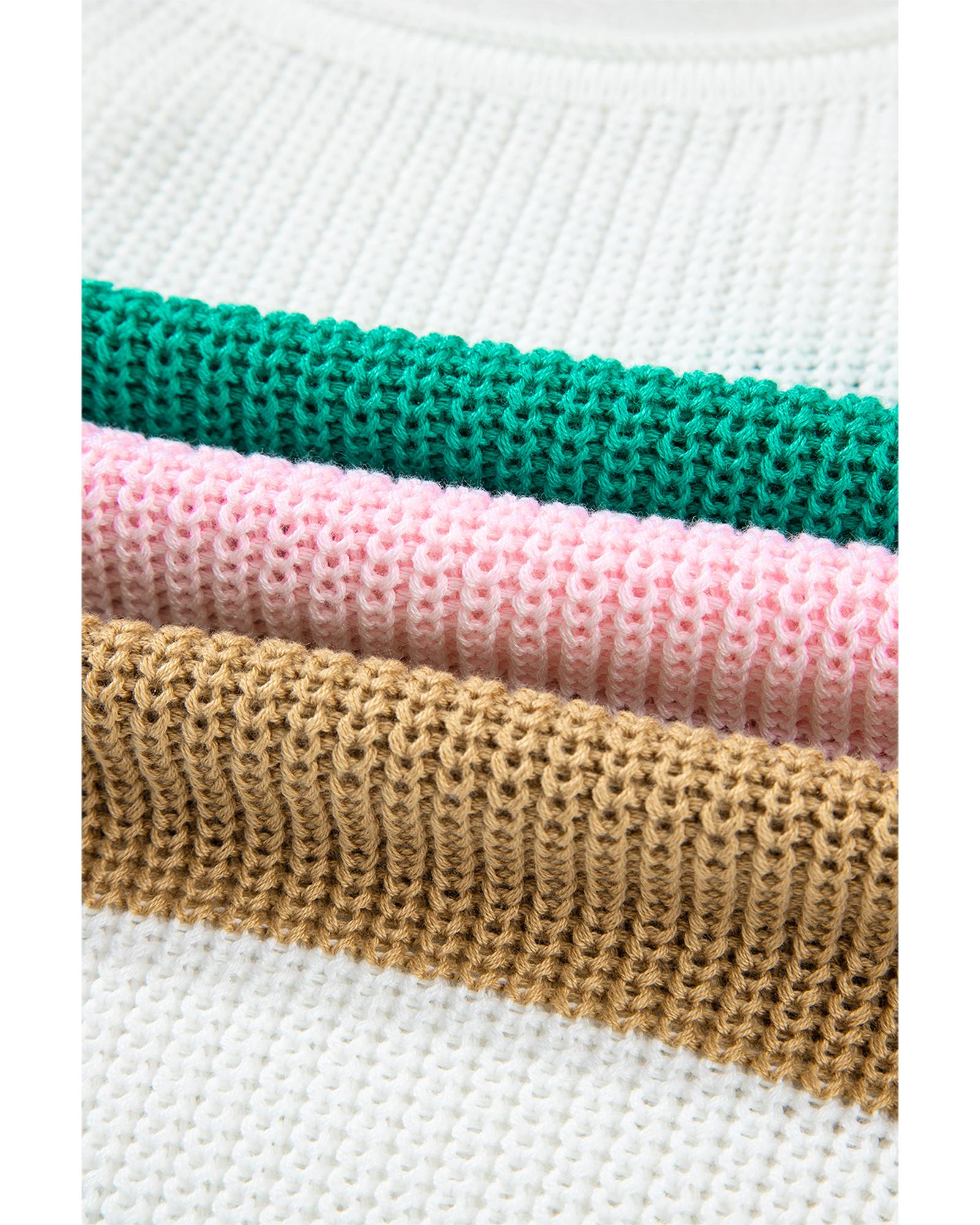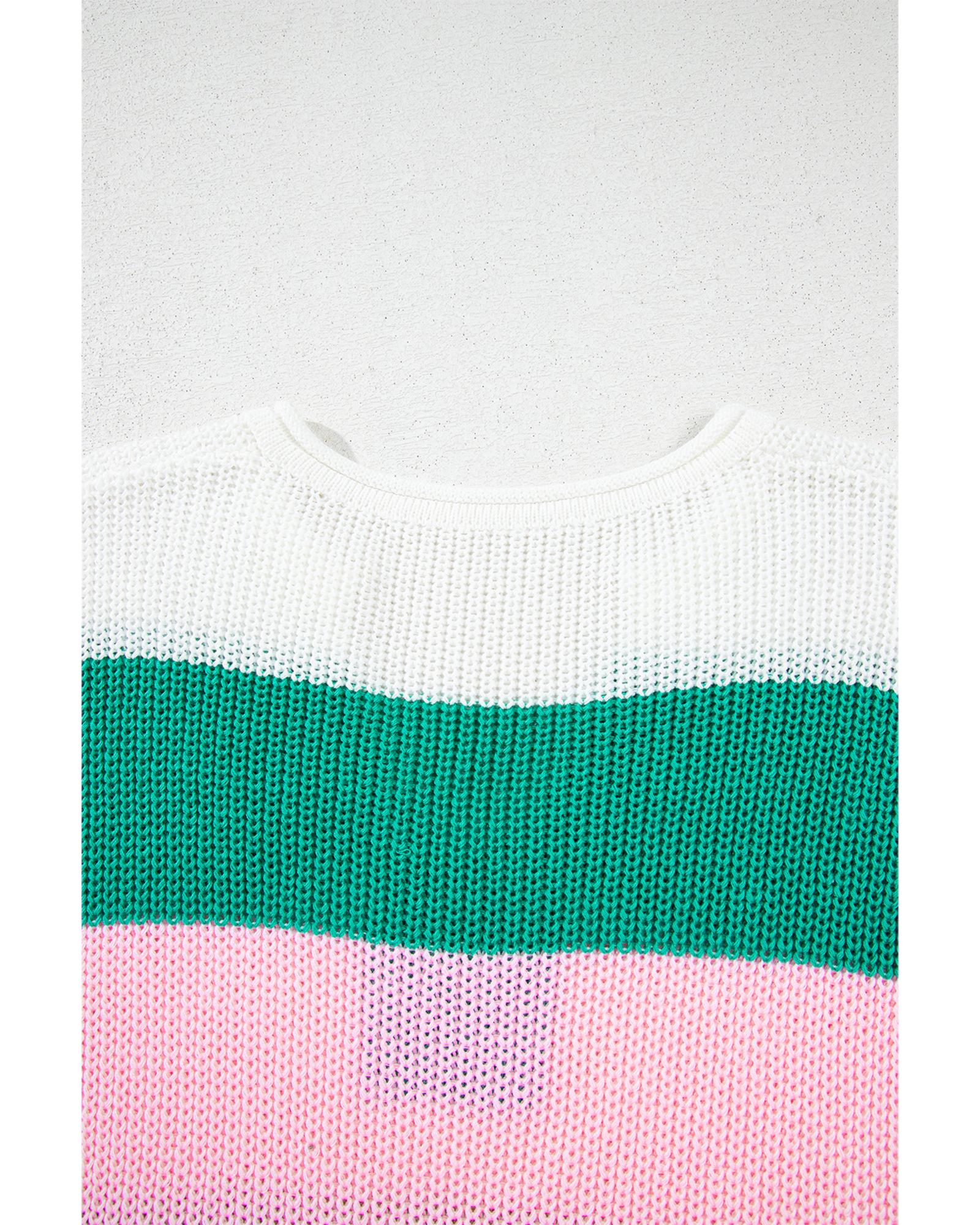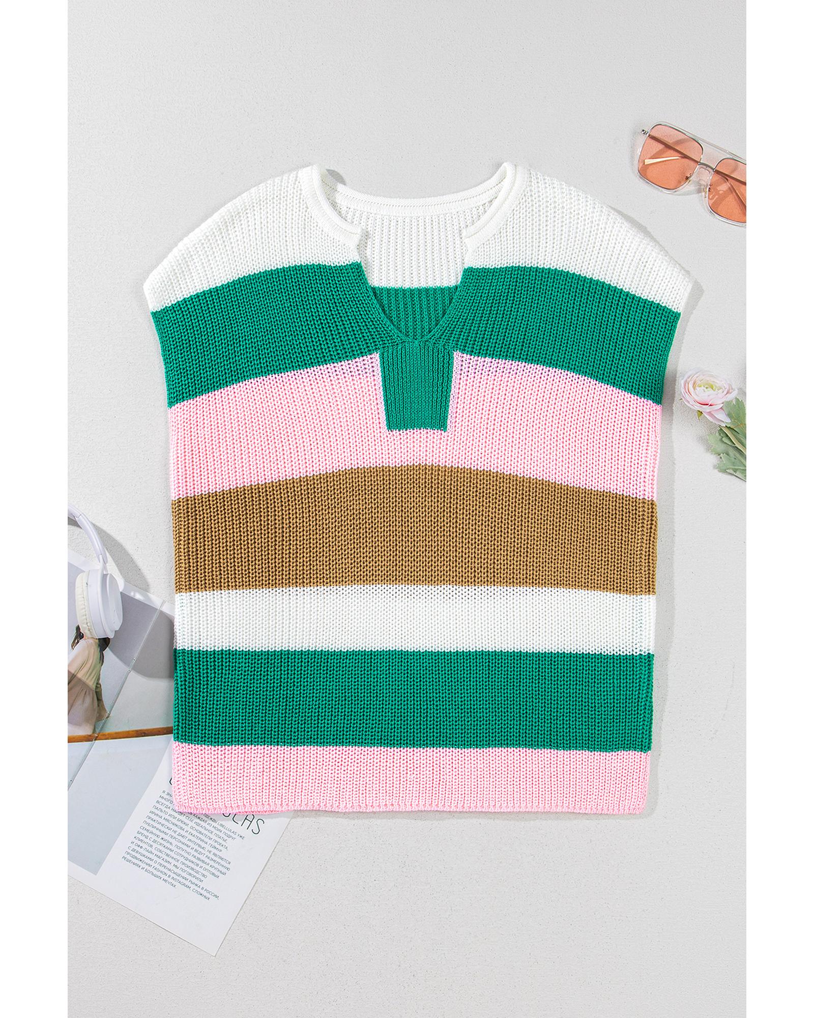 Multicolour Color Block Notch V Neck Sweater T Shirt – M