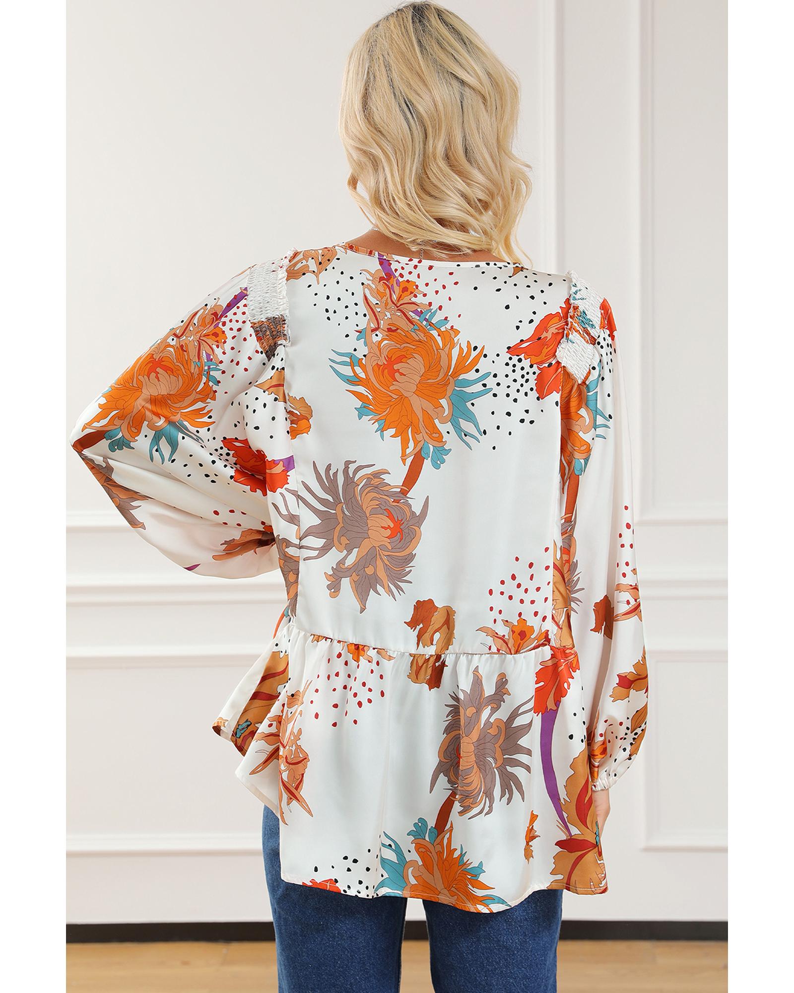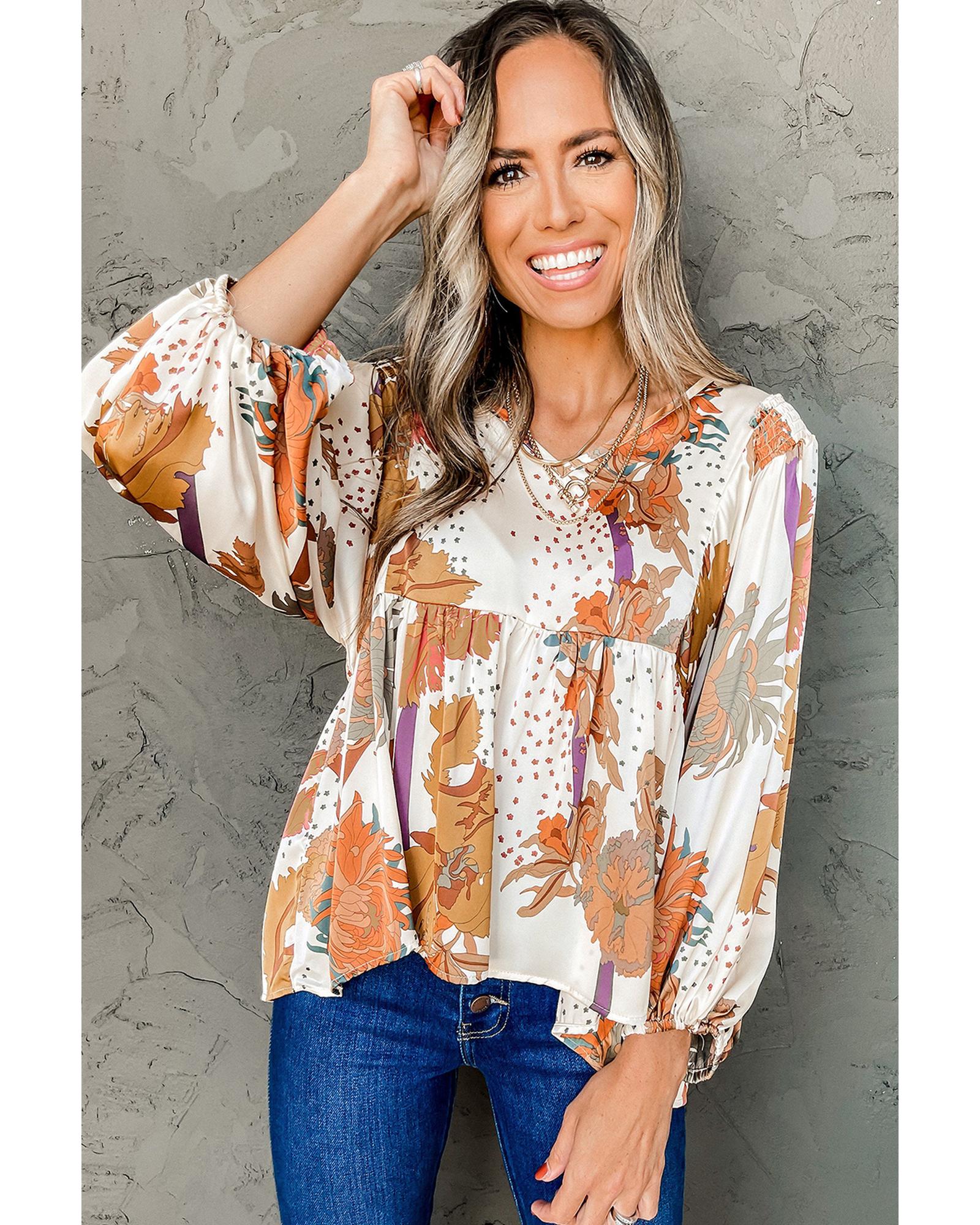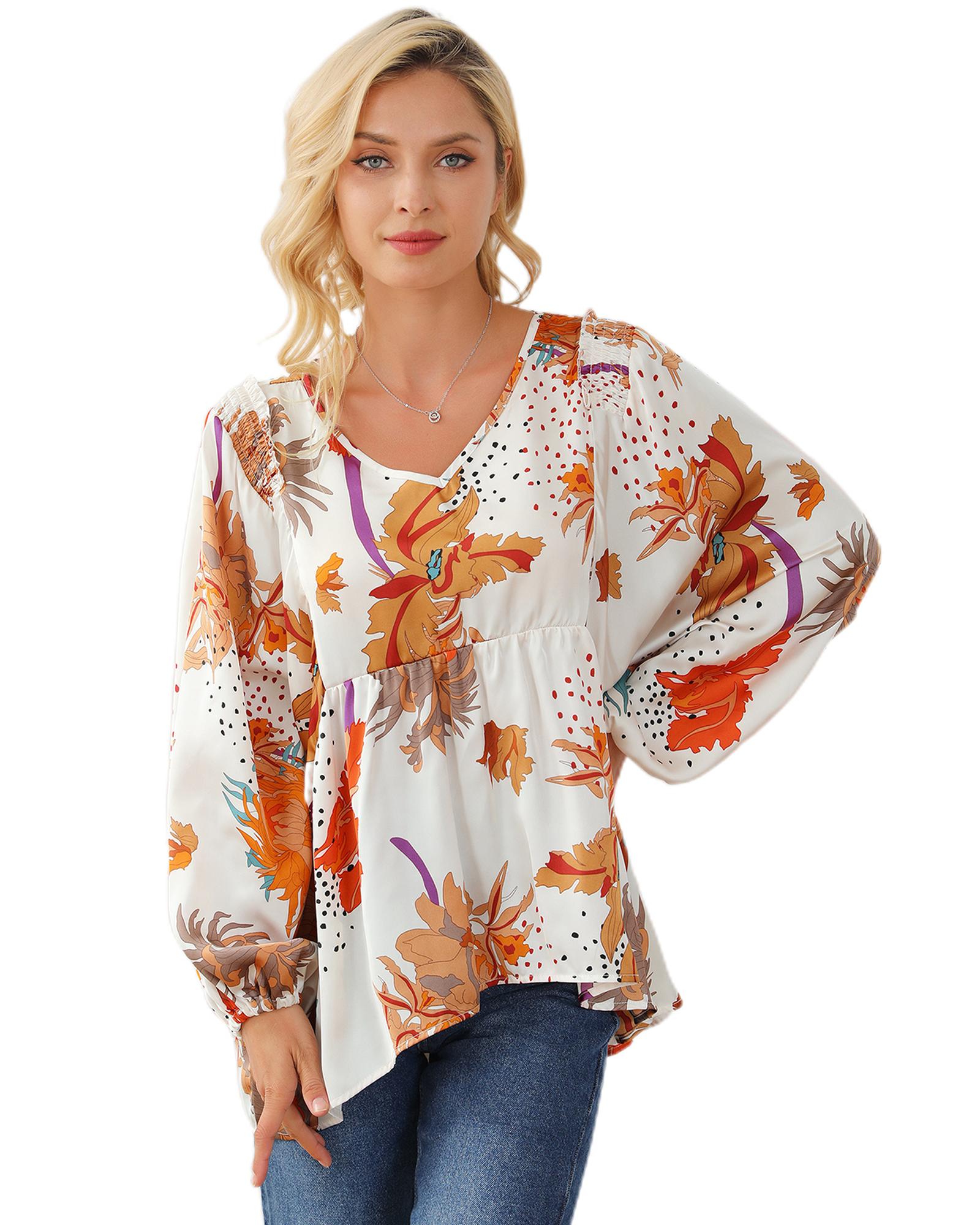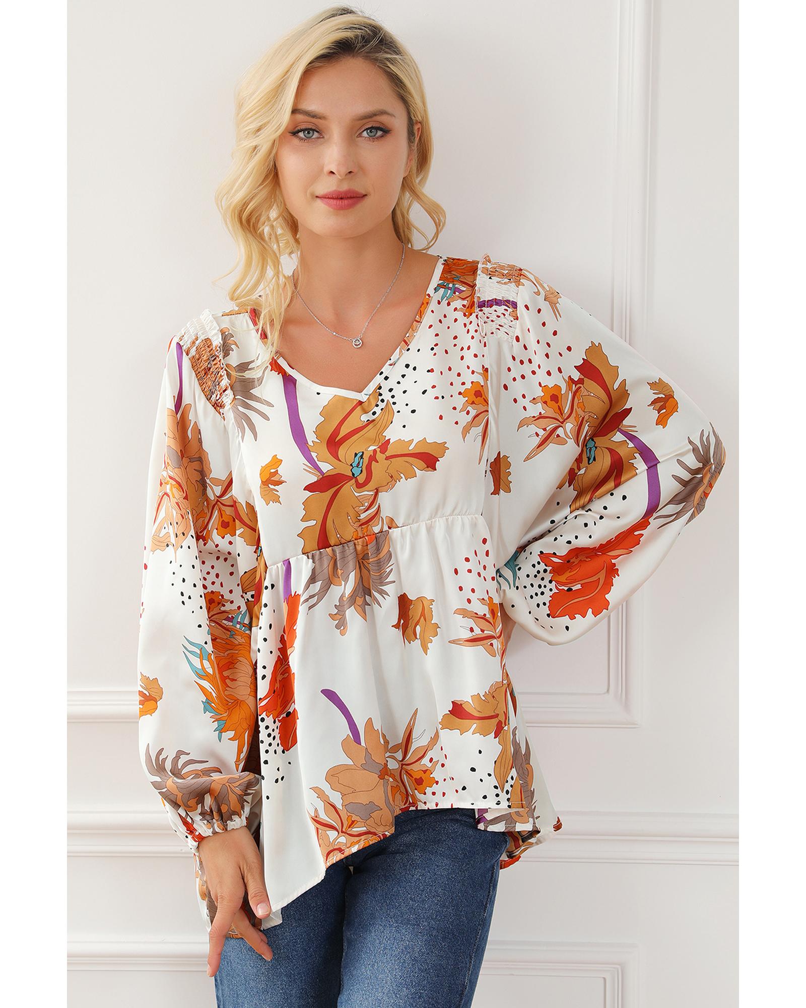 Multicolour Floral Print V Neck Babydoll Blouse – L