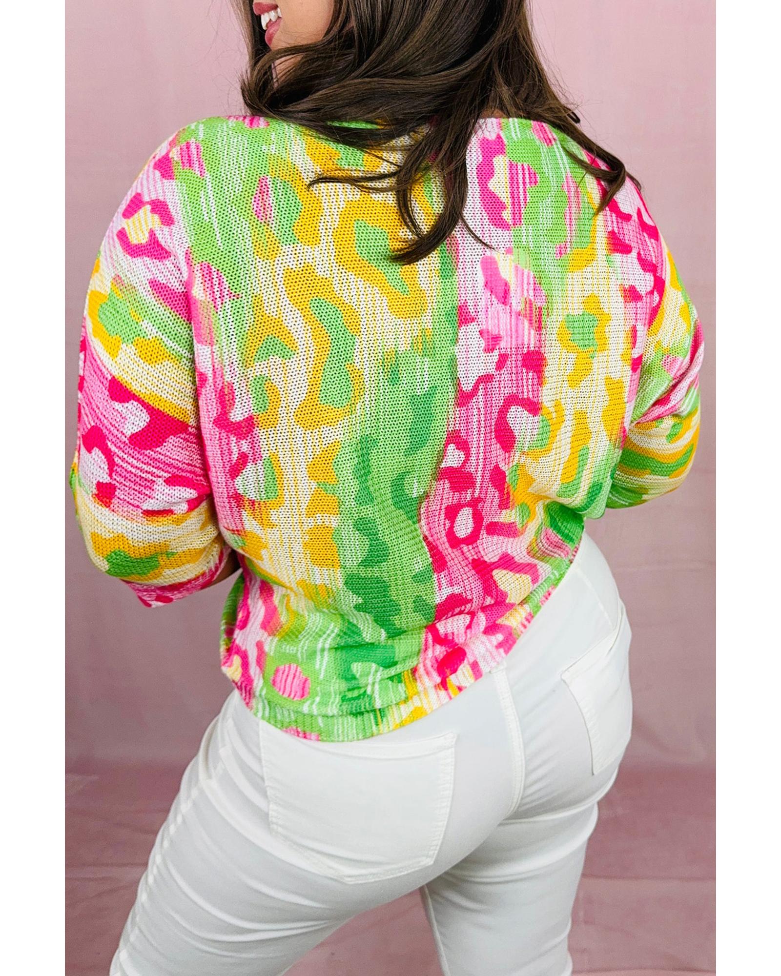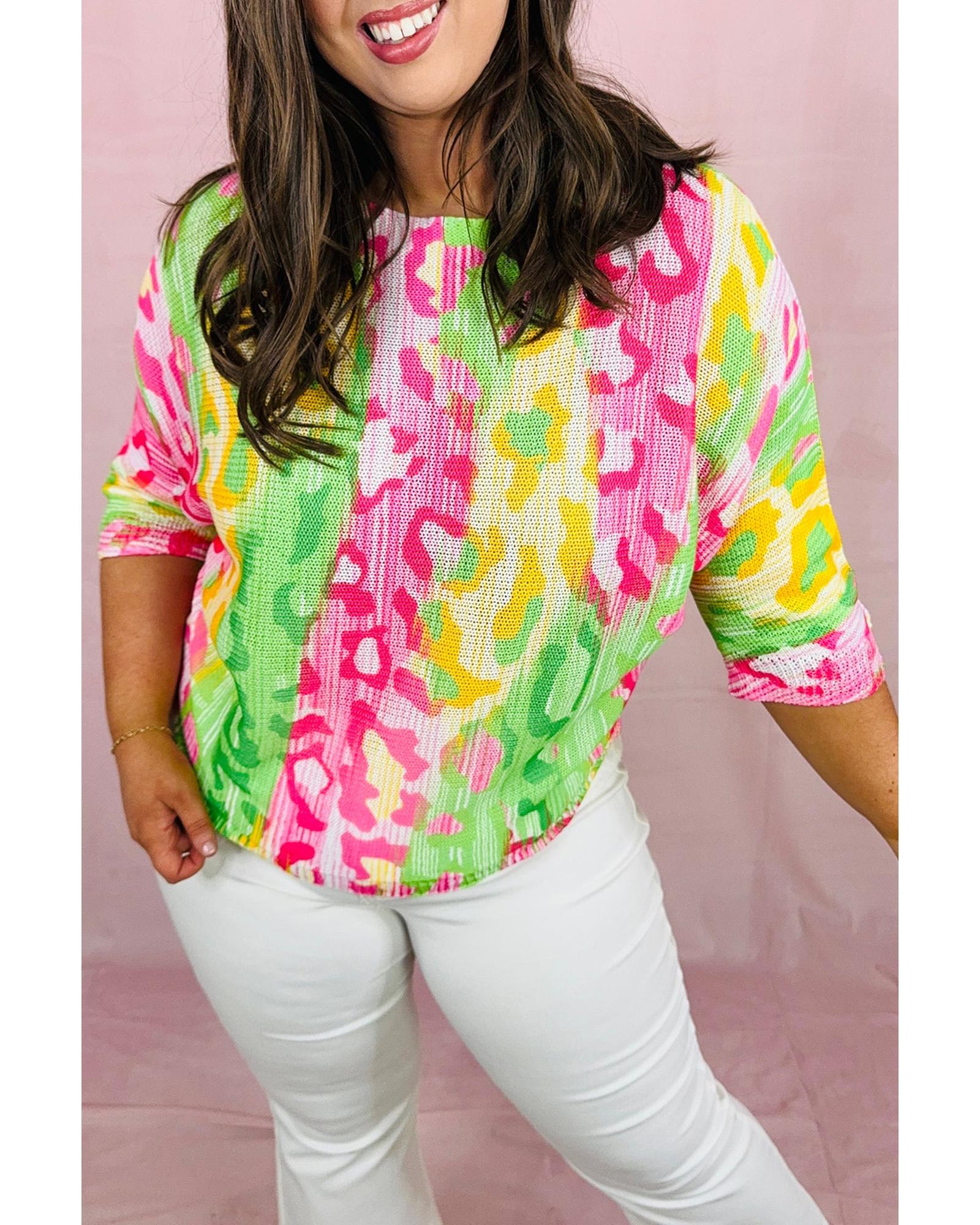 Multicolour Leopard Color Block Knitted Crewneck Plus Size T Shirt – 3X