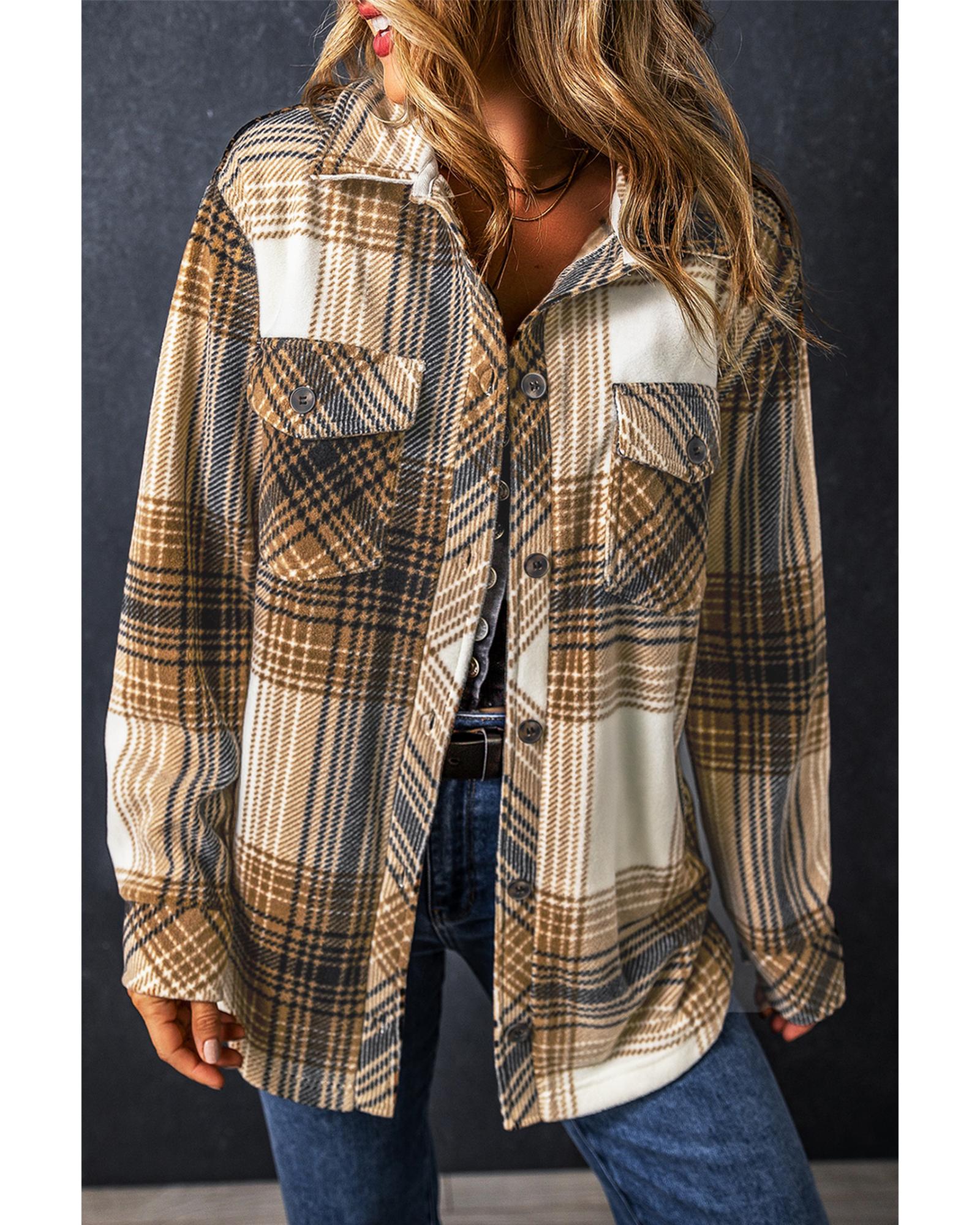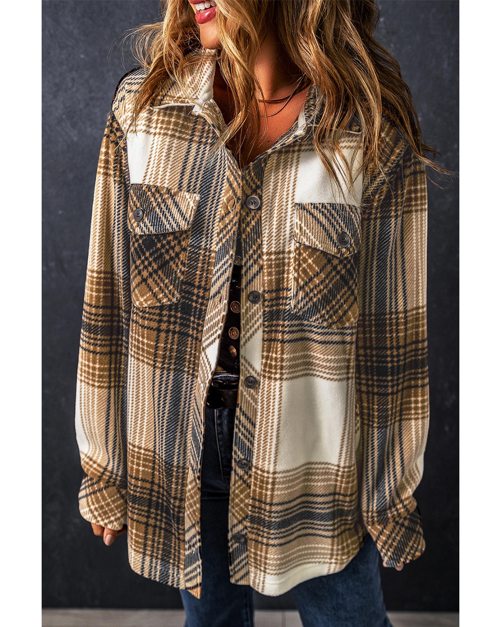 Multicolour Plaid Print Flap Pocket Button Up Shacket – L